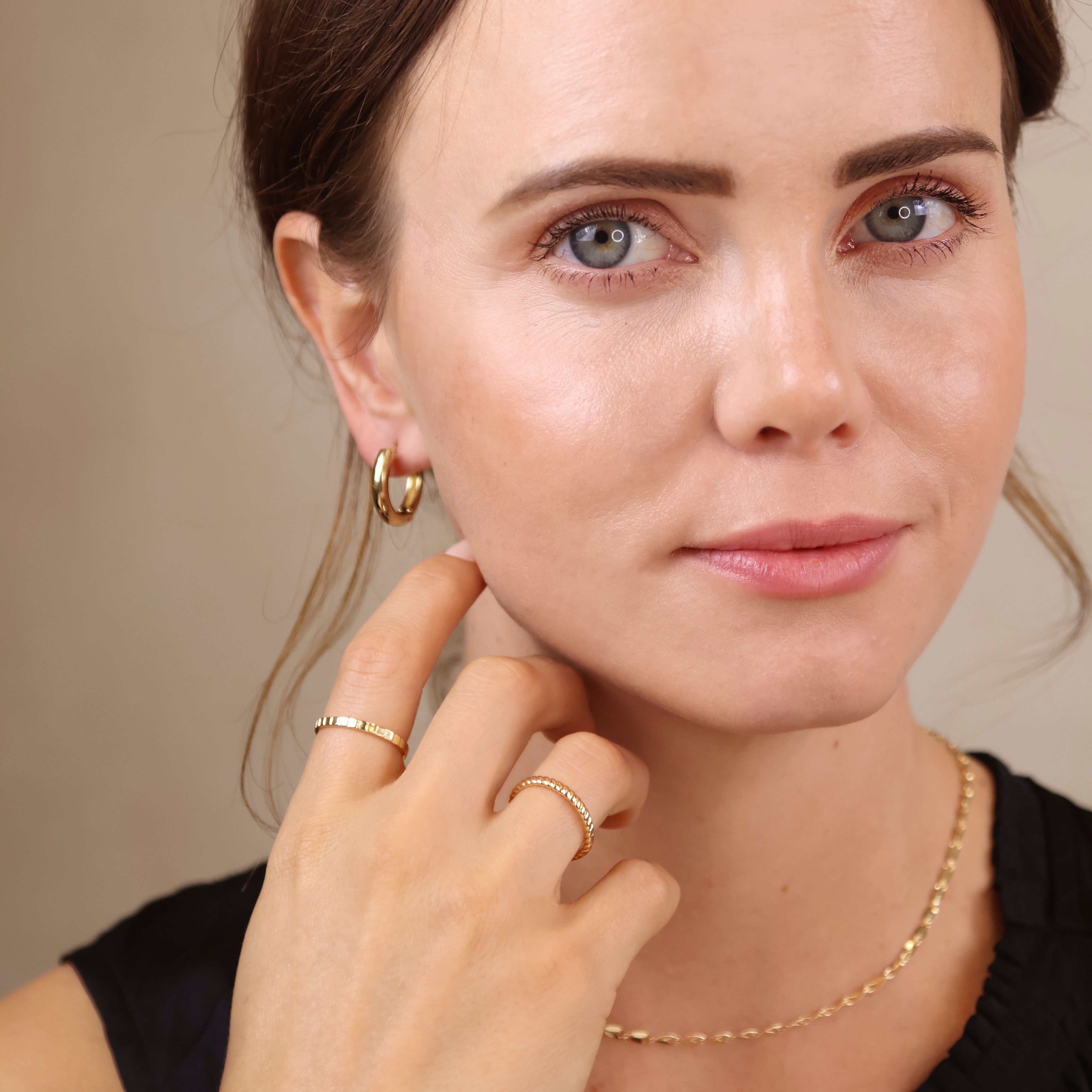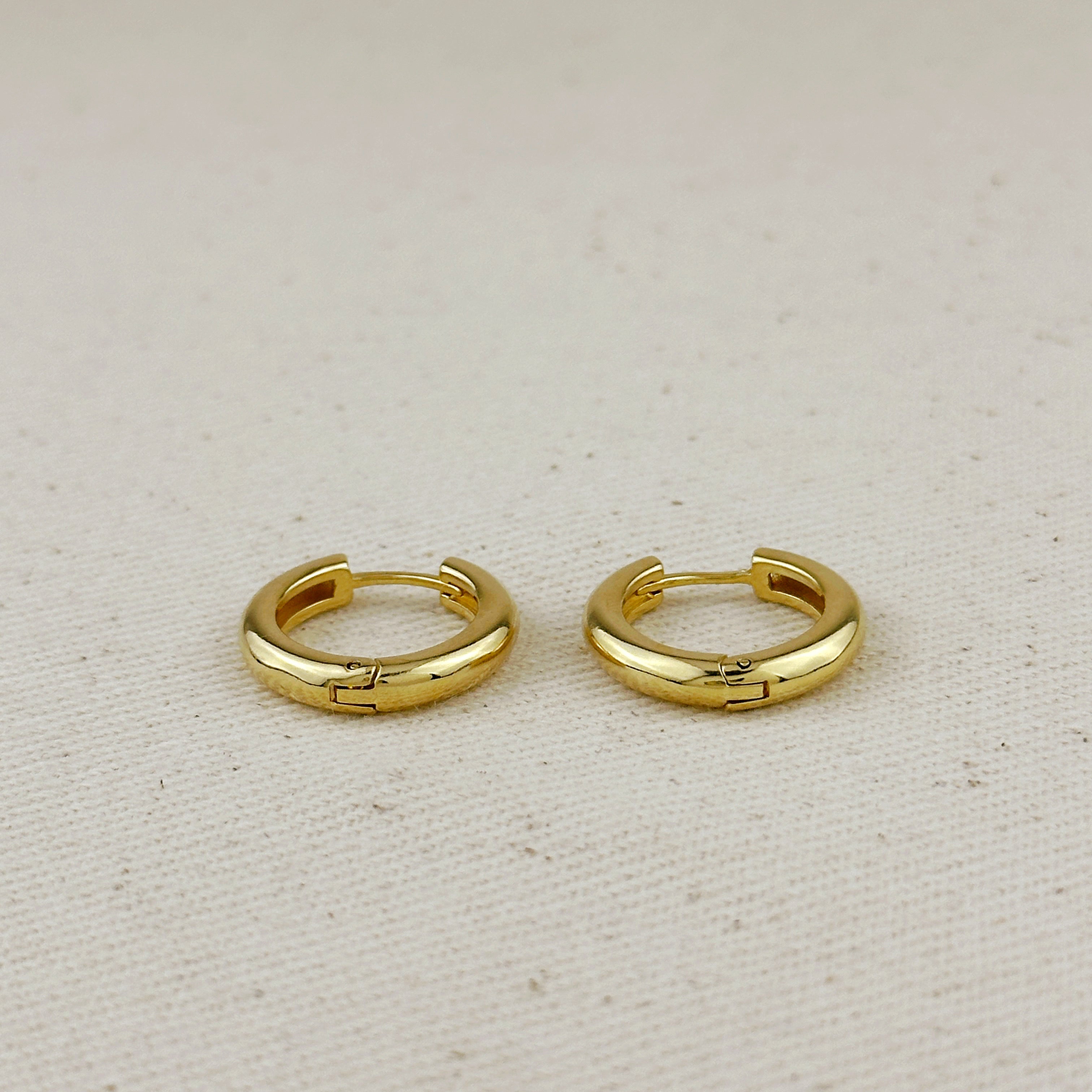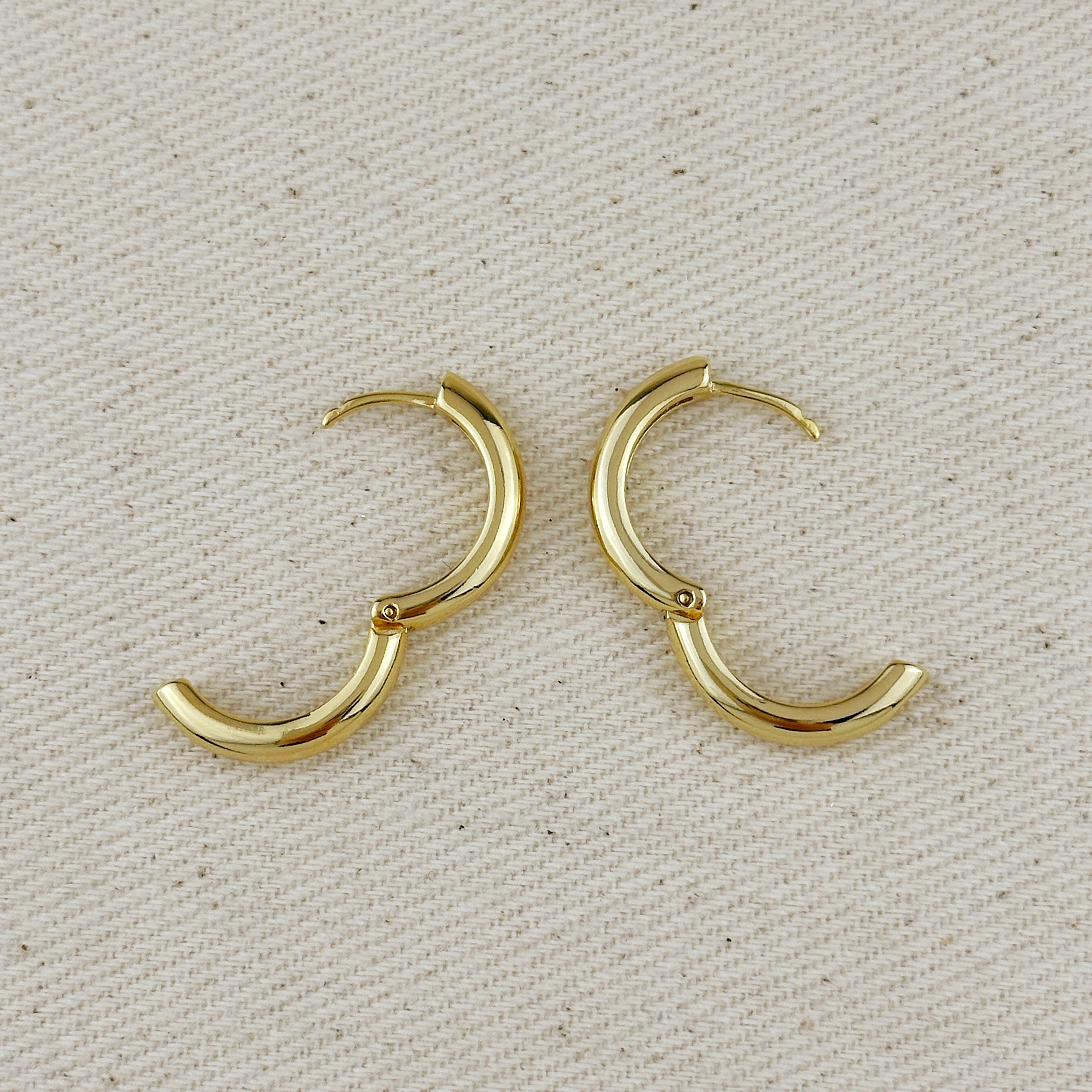 Elevate your style with these sleek 18k Gold Filled Polished Clicker Hoop Earrings. At 20mm in diameter, they're the perfect size for everyday wear, striking a balance between subtle and statement-making. The highly polished finish offers a radiant shine, while the secure clicker closure ensures easy wear and peace of mind.