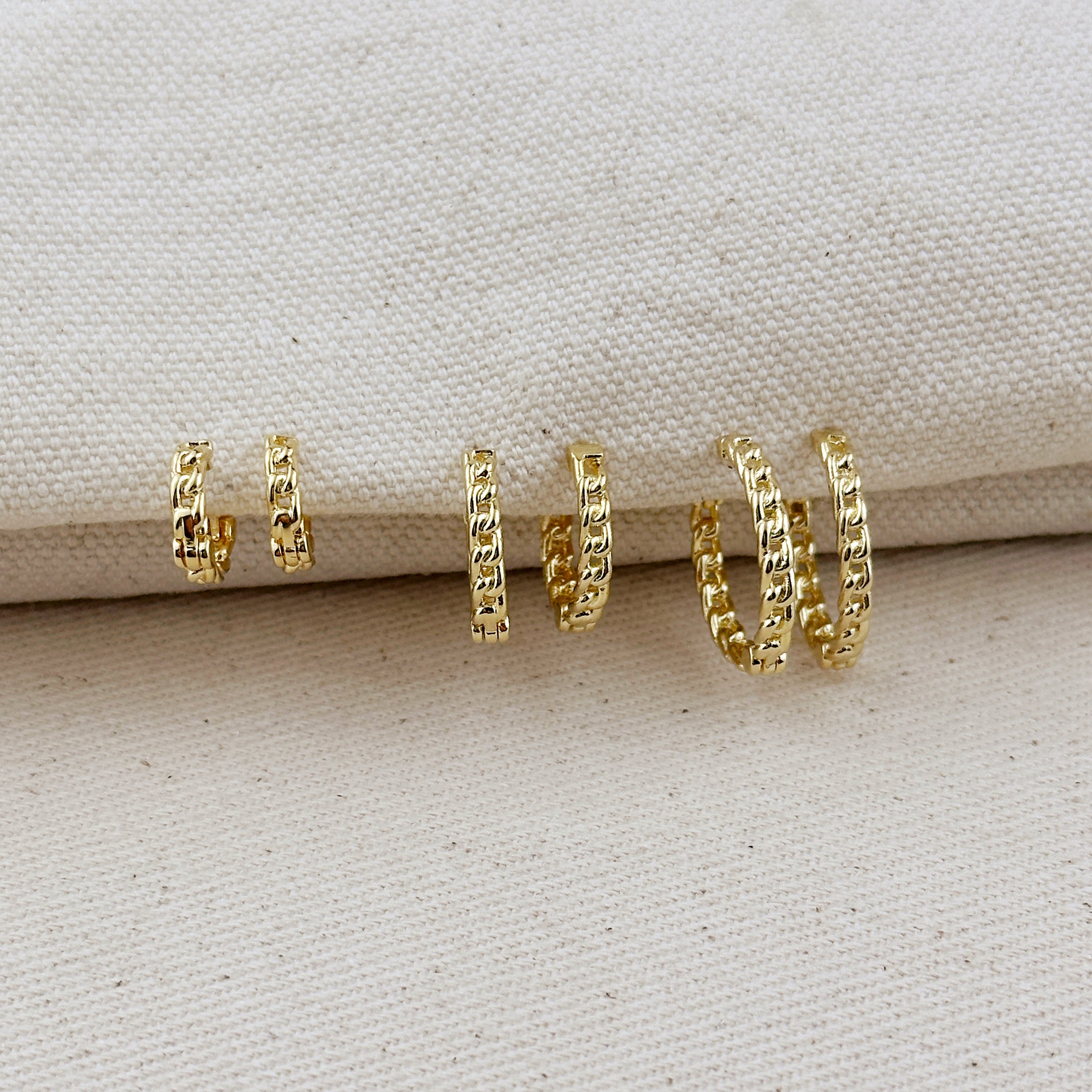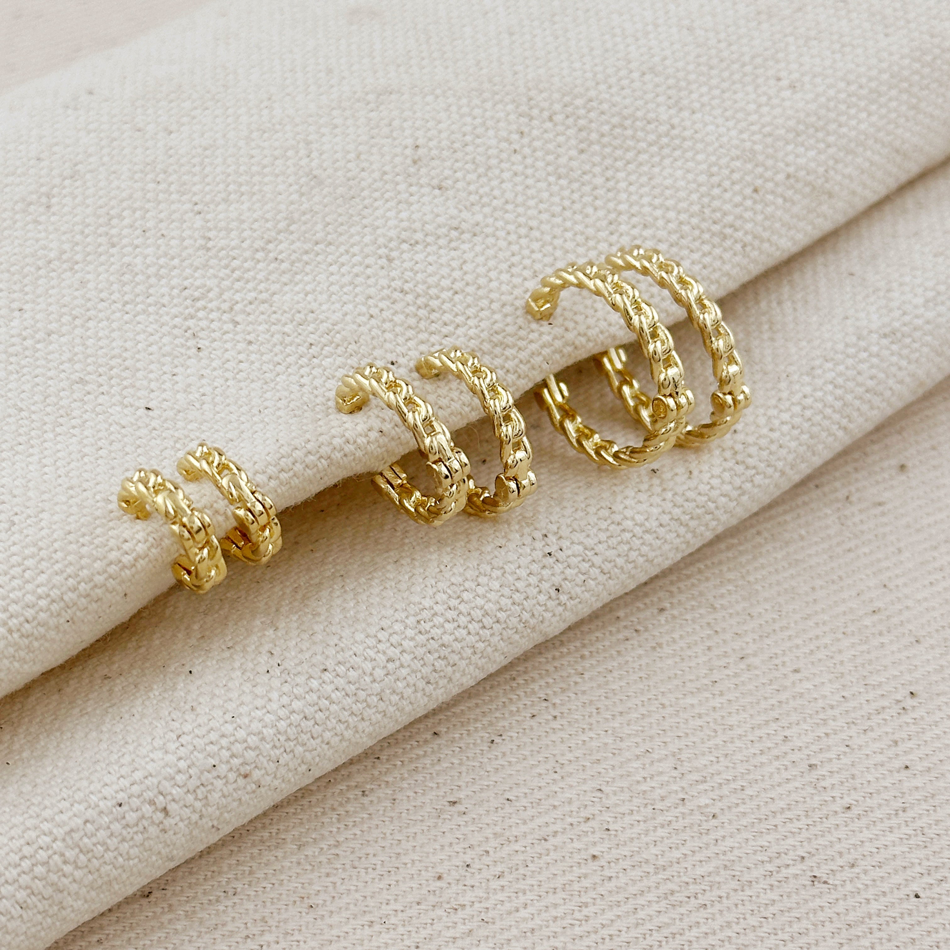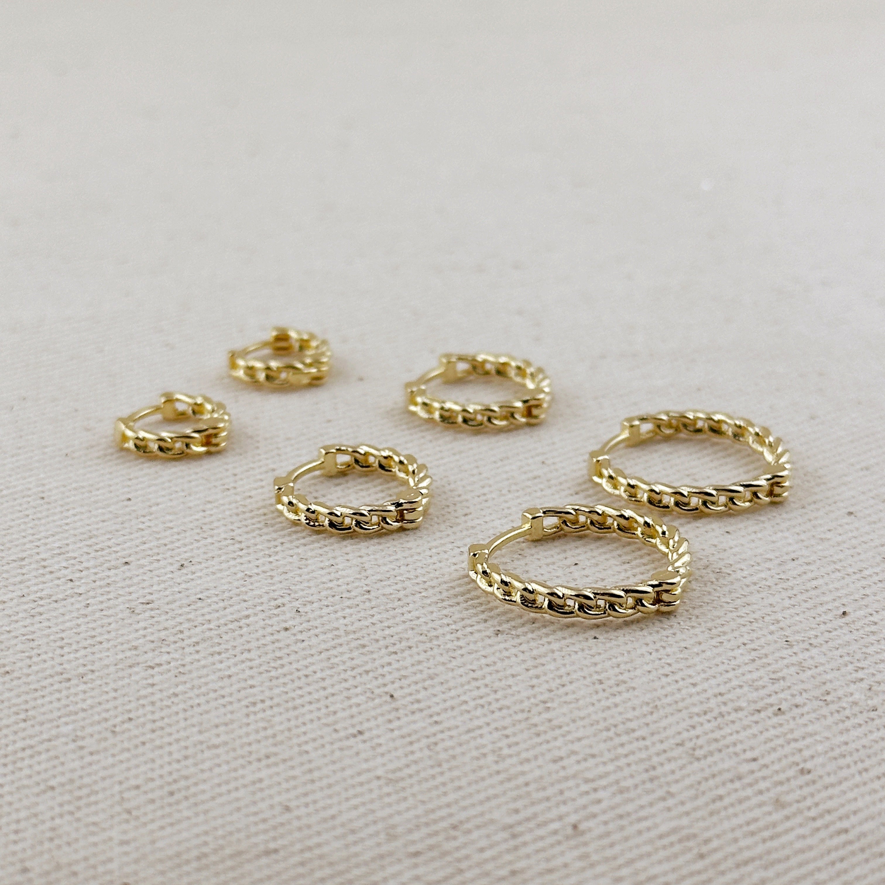 18k Gold Filled 2mm Cuban Chain Clicker Hoop Earrings