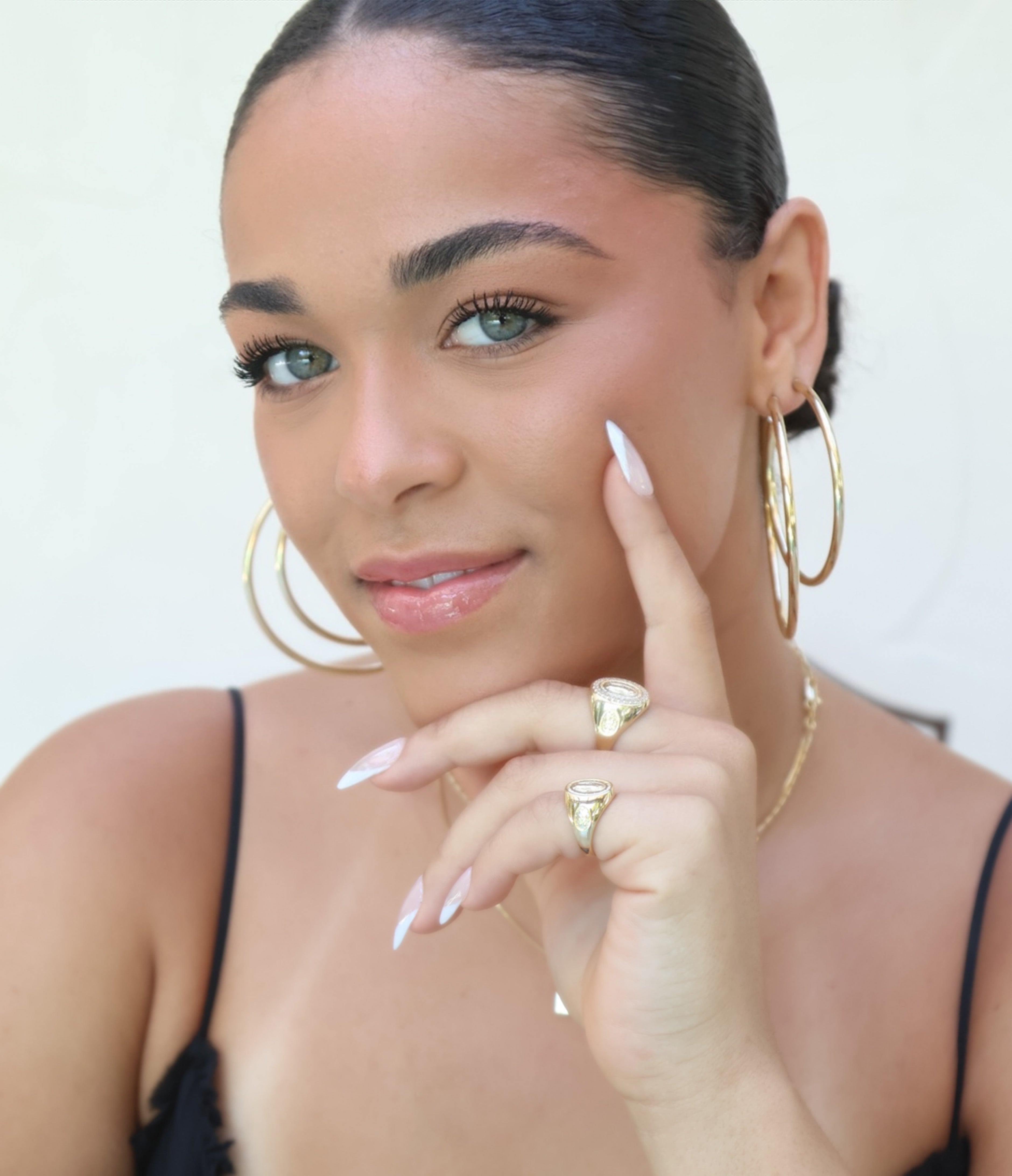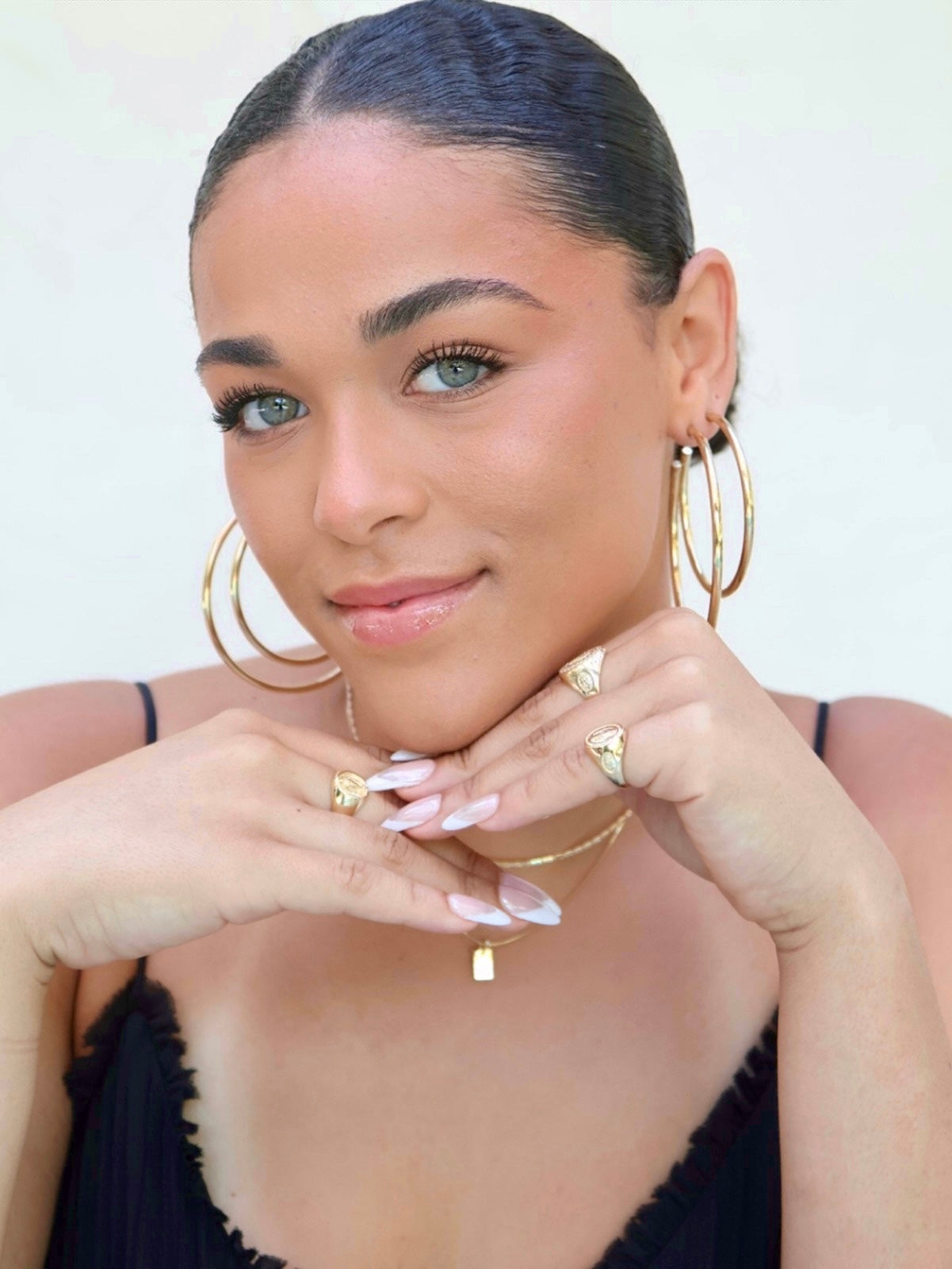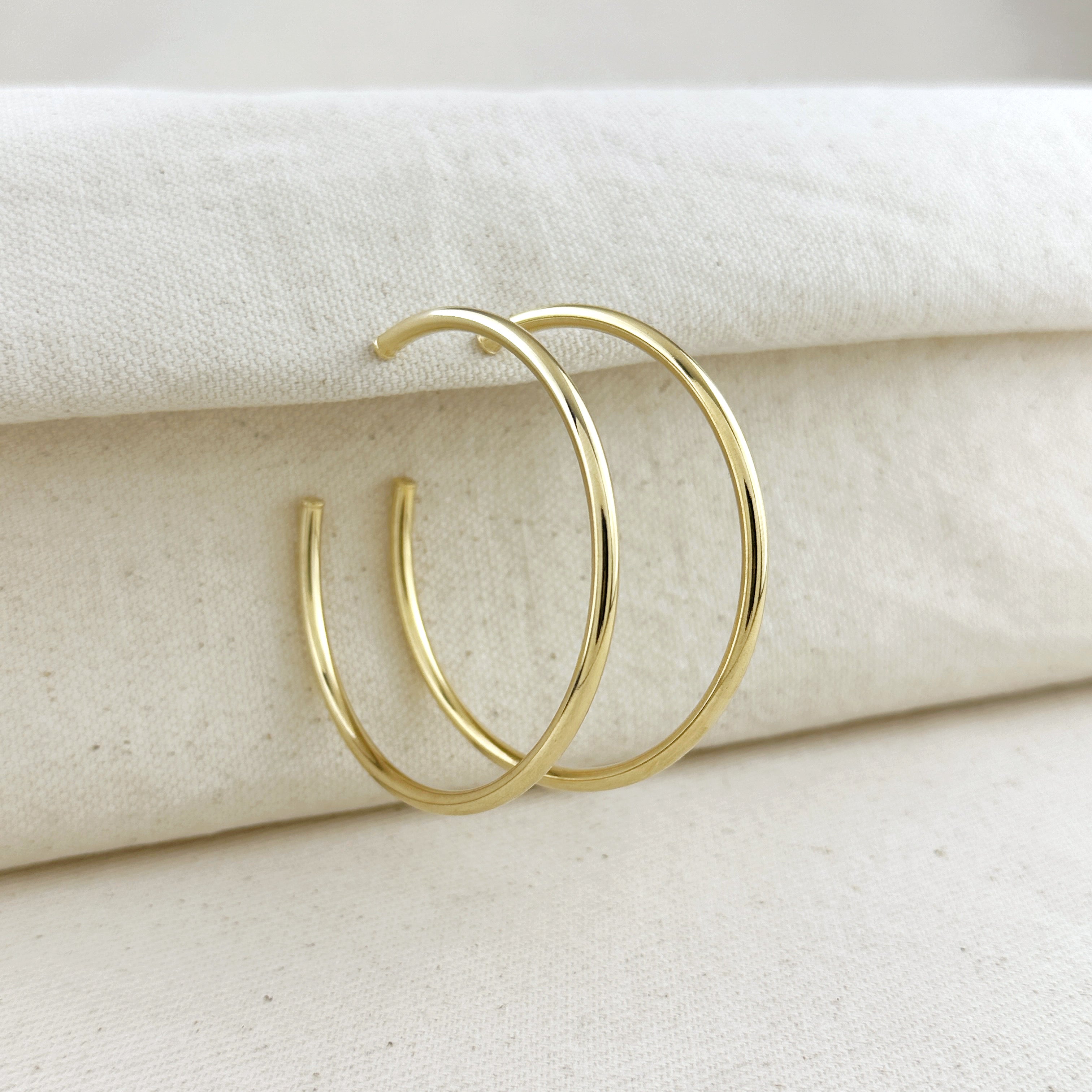 Model is wearing 60mm and 70mm hoops