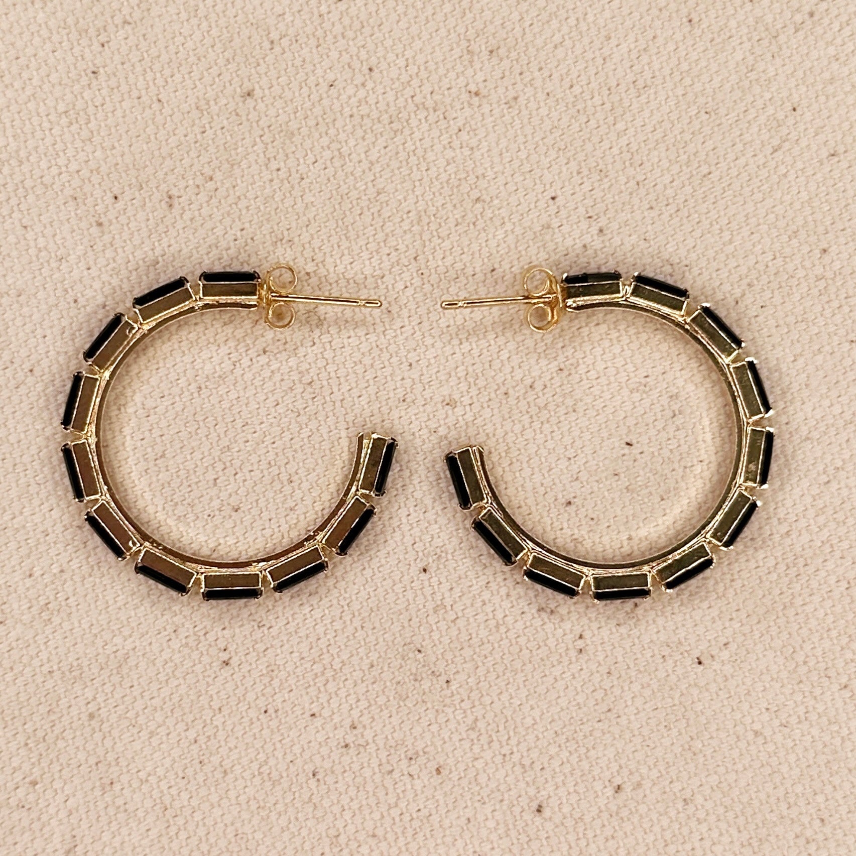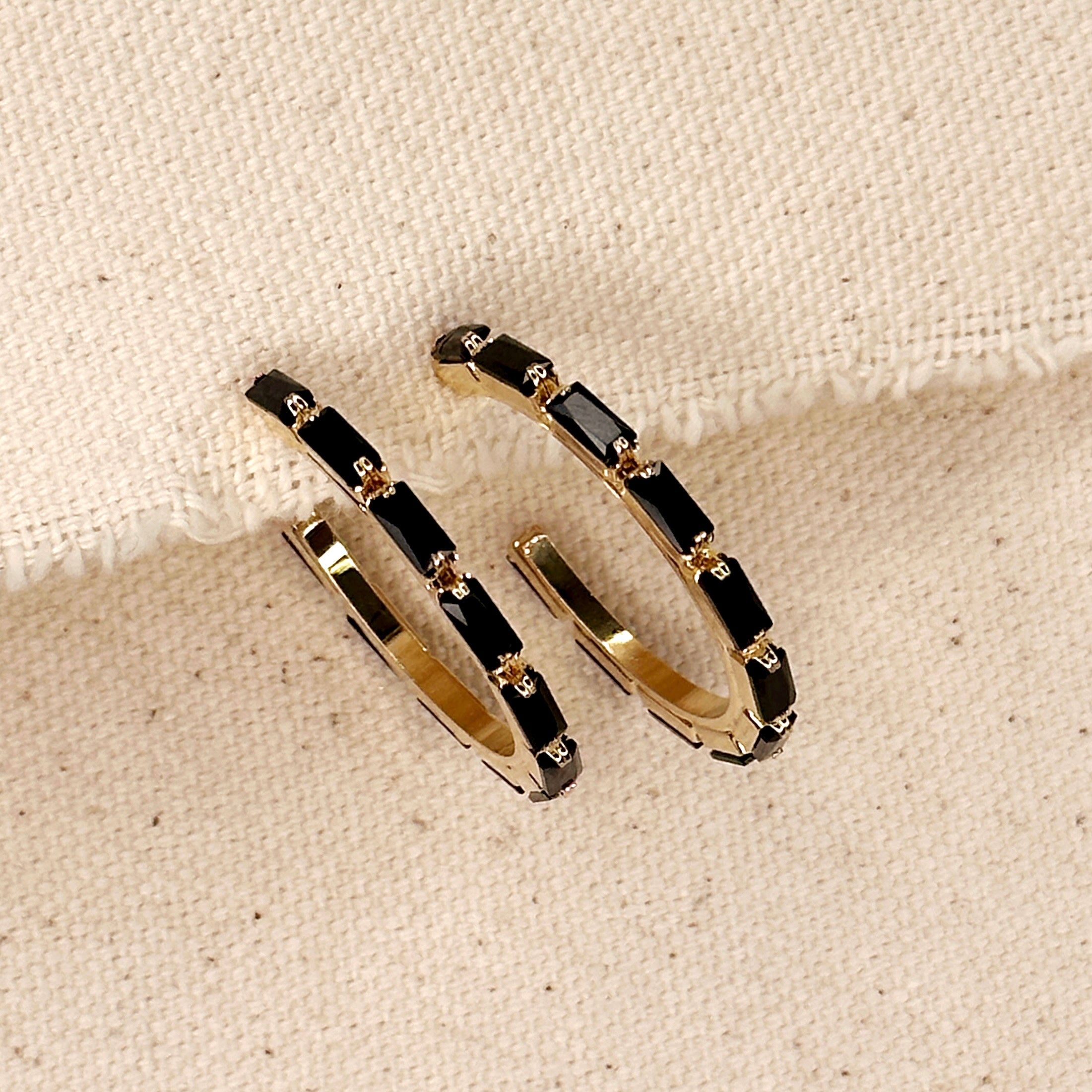 18k Gold Filled Black Baguette Cubic Zirconia Hoop Earrings