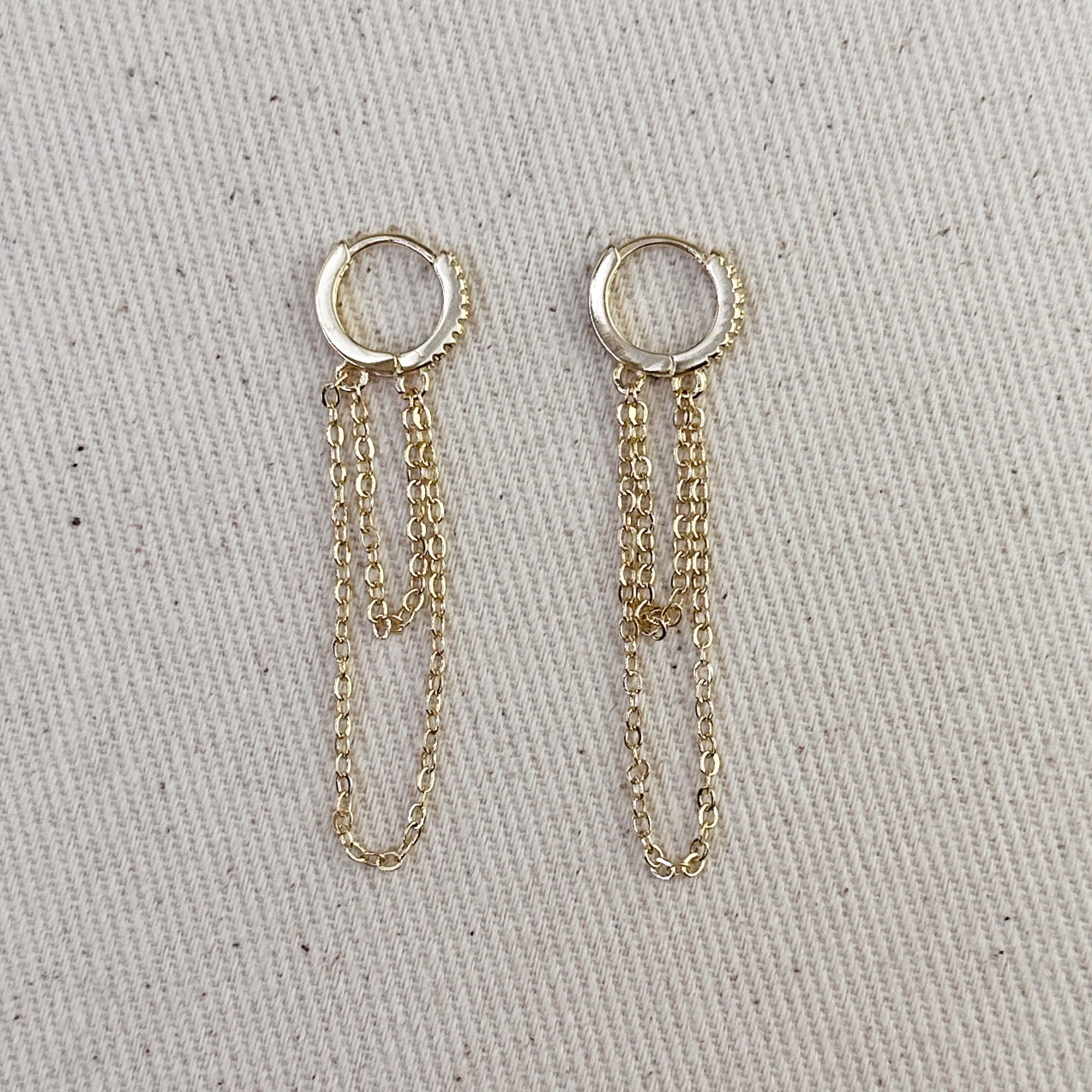 18k Gold Filled CZ Hoop With Dangling Chains Earrings