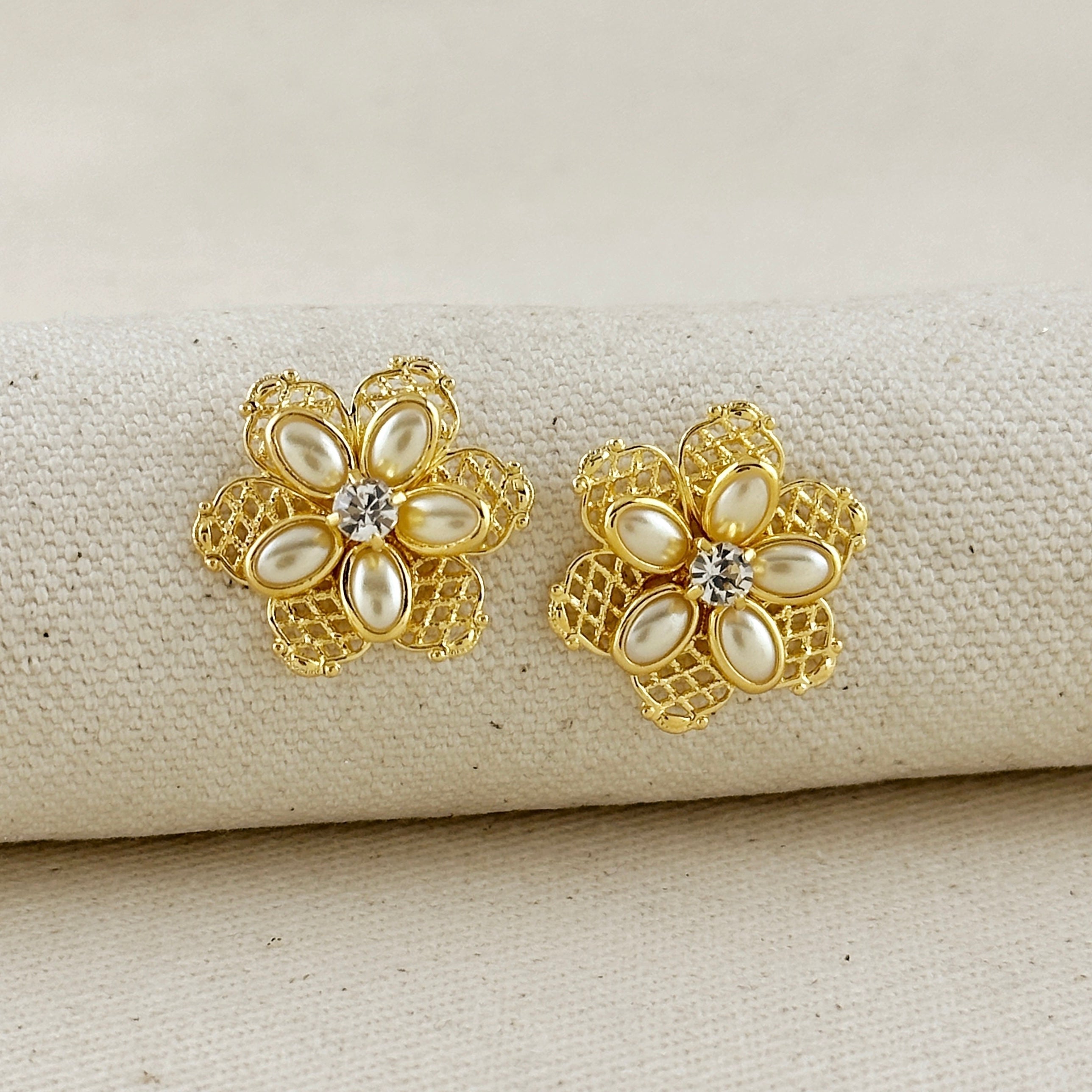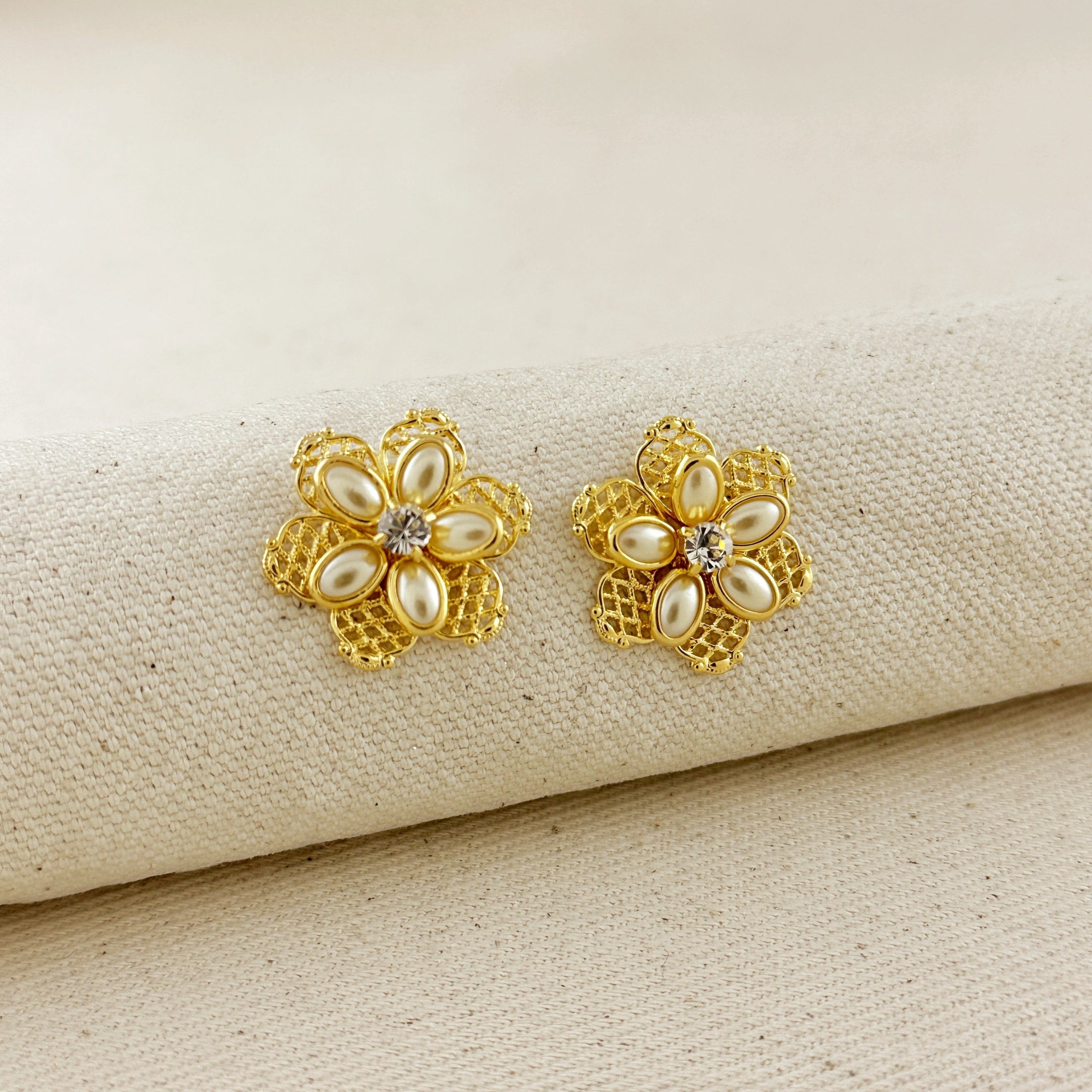 Each earring showcases meticulous craftsmanship with delicate petals shaped pearls layered to create dimension and movement.