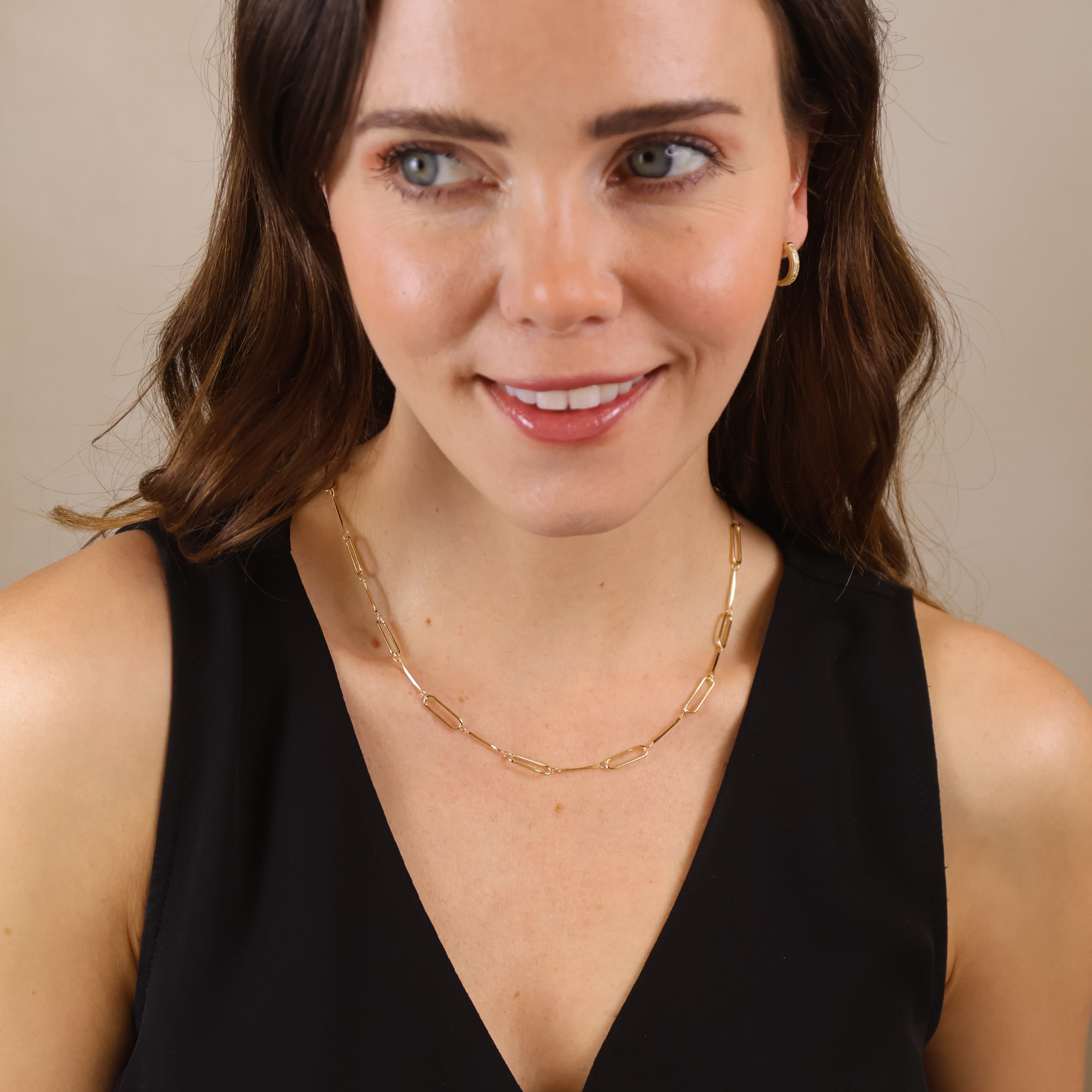 Elevate your accessories with our premium 18k Gold Filled Paperclip & Straw Chain. This versatile design alternates between elongated paperclip links and smooth straw segments, creating a contemporary yet timeless look.