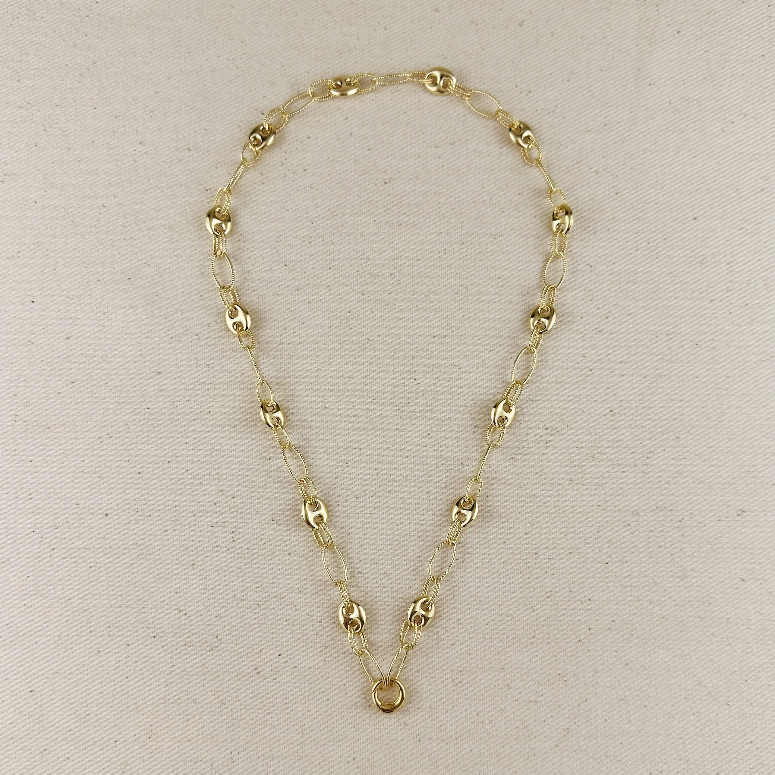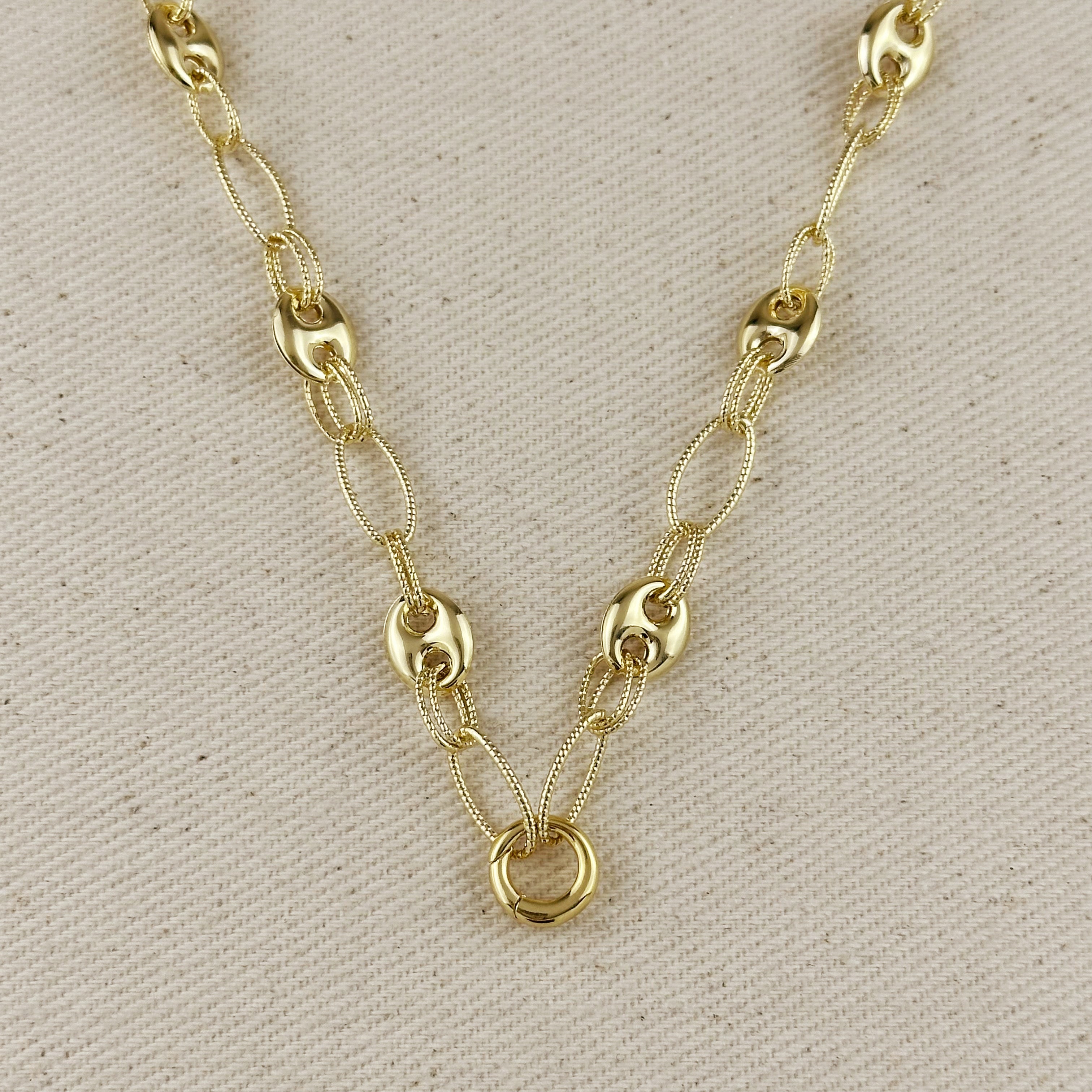 18k Gold Filled Puffy Mariner Necklace With Carabiner Clasp