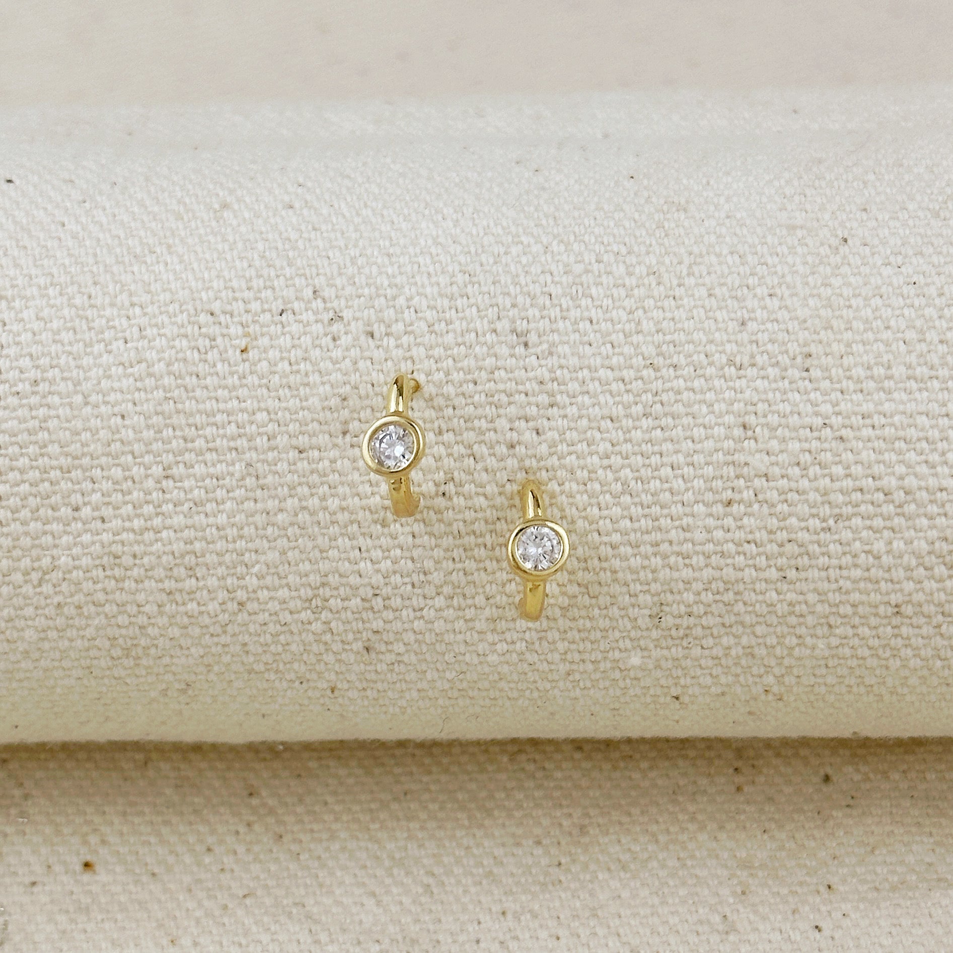 18k Gold Filled Solitaire Bezel CZ C-Hoop Earrings