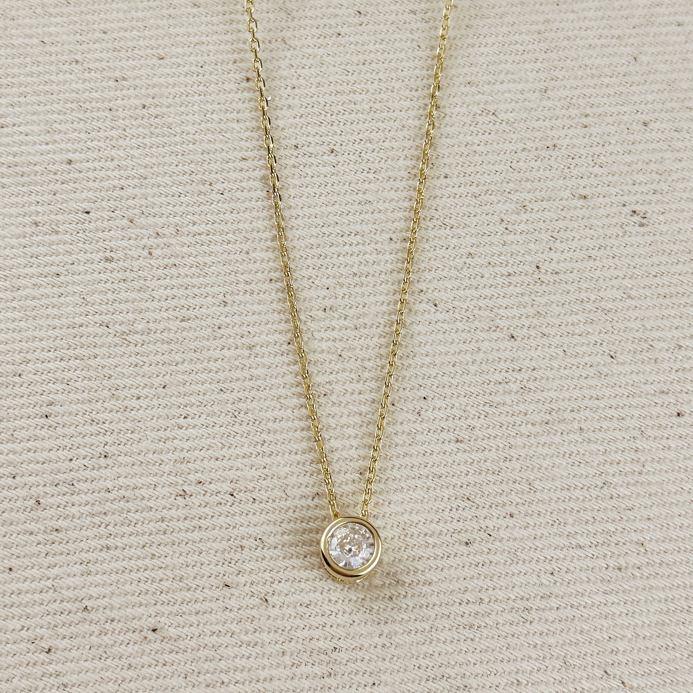 Crafted with 18k gold-filled material, this necklace offers the perfect blend of luxury and durability. Its versatile design transitions effortlessly from day to night, making it an ideal accessory for any occasion. The classic solitaire style ensures this necklace will remain a timeless addition to your jewelry collection.