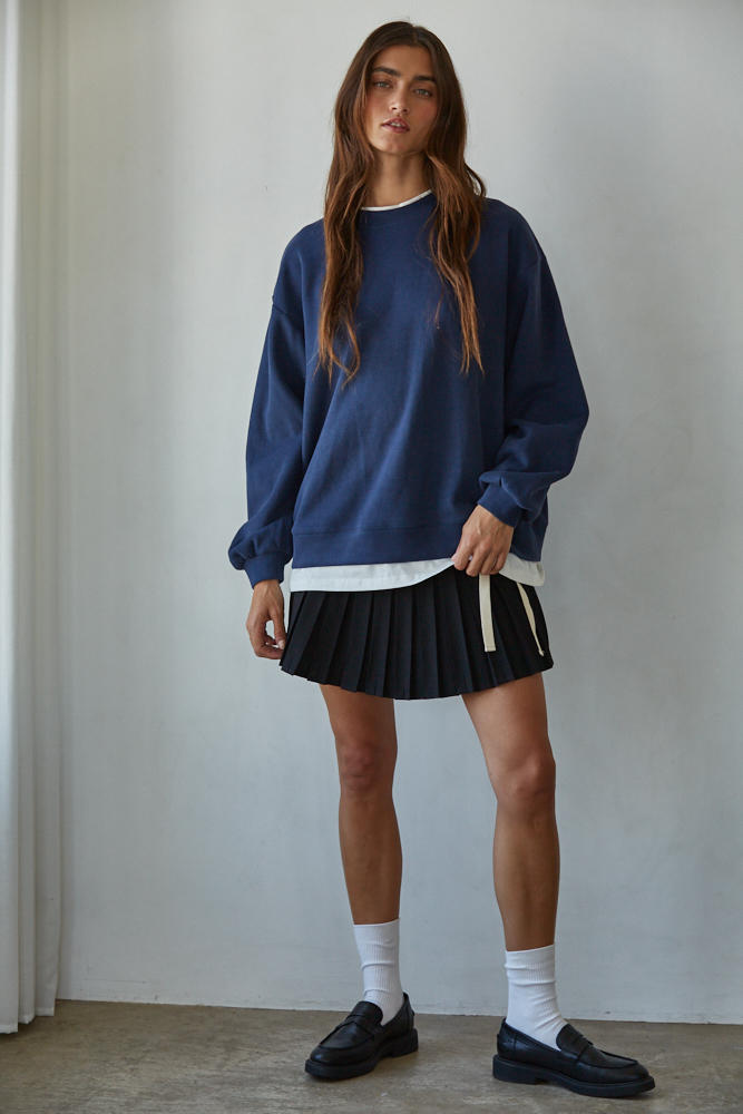 Always On Crew Twofer Pullover: Navy