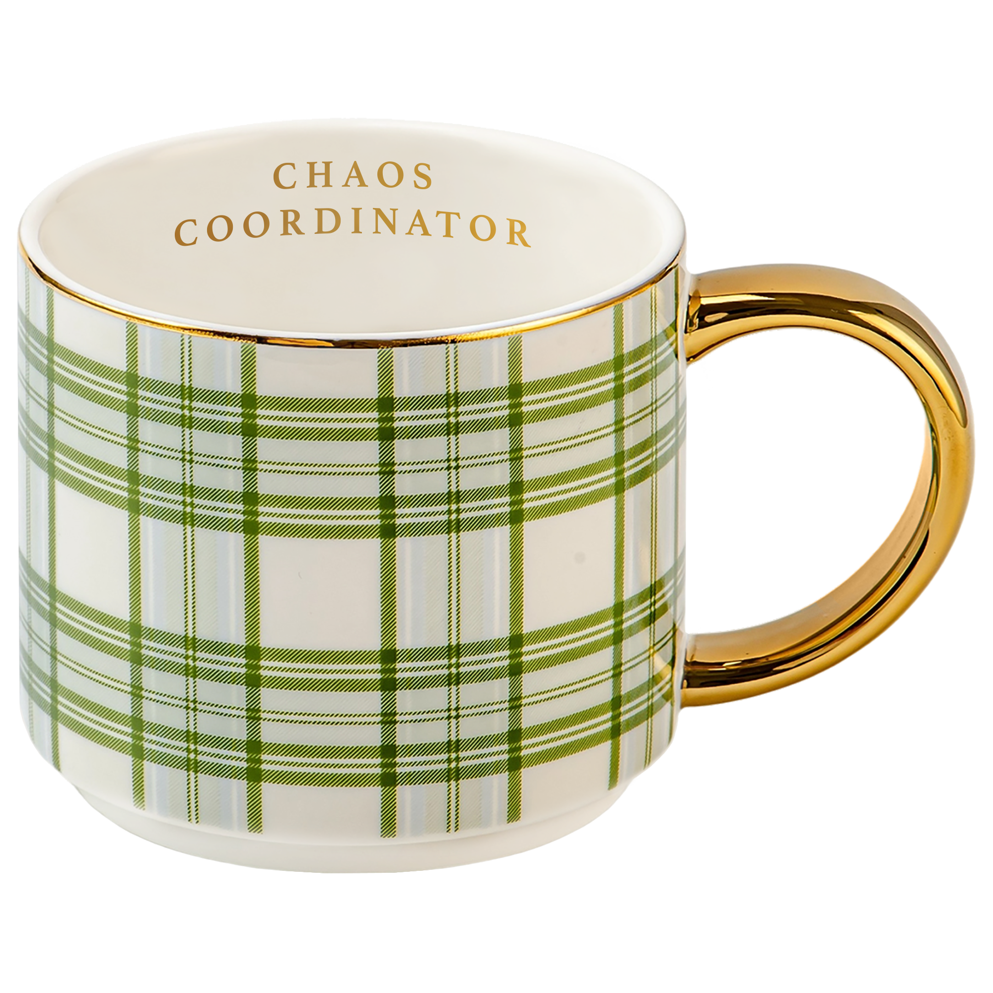 Bring a little joy to the busiest days with our Chaos Coordinator mug. The light blue and green plaid design adds a cheerful touch, while the gold text along the inner rim offers a playful reminder that you’re handling it all with grace. Perfect for morning coffee, afternoon pick-me-ups, or a well-earned moment of quiet, it makes a thoughtful gift for moms, teachers, and anyone who keeps life running smoothly.