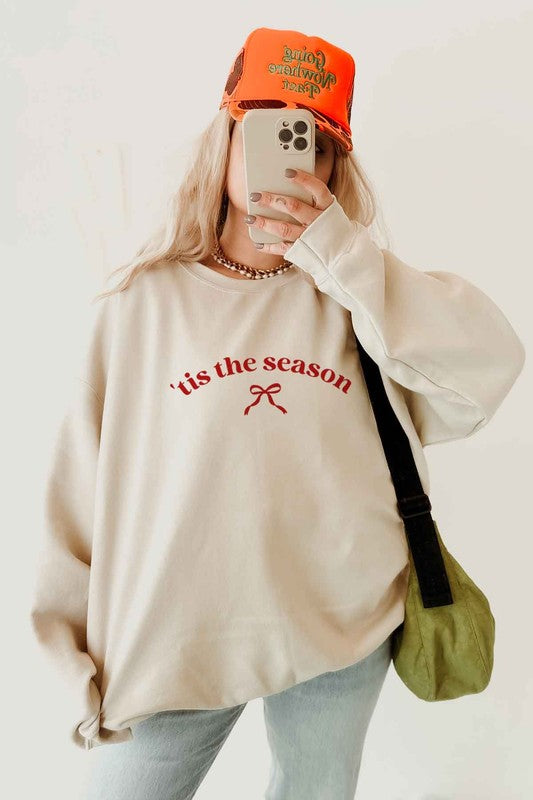 CHRISTMAS RIBBON BOW OVERSIZED SWEATSHIRT
