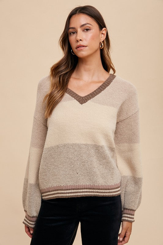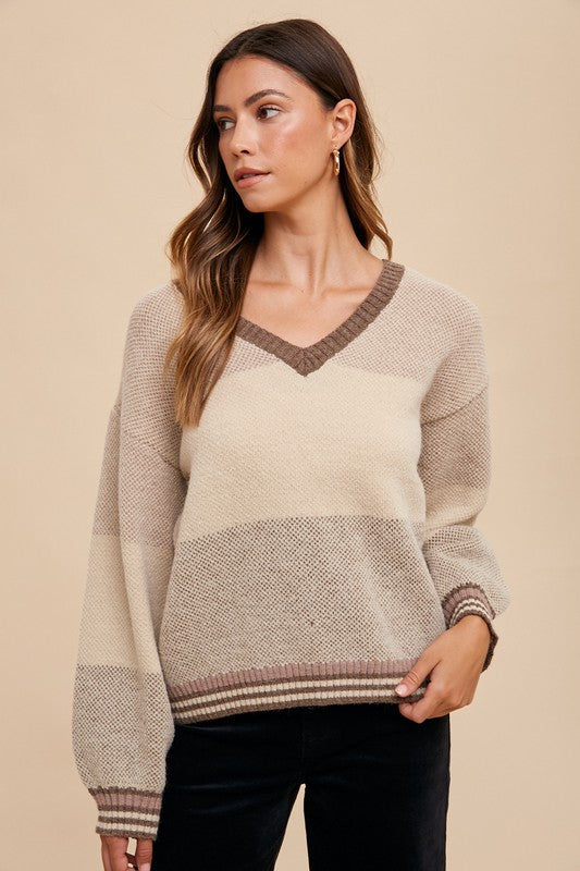Color Block Sweater Top: Mocha