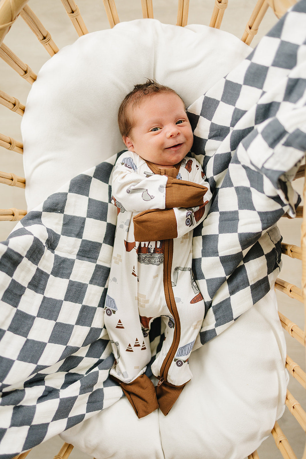 Gear up your little one for adventure with our Construction Trucks Ribbed Bamboo Zipper, designed for newborns to 18 months. Crafted from ultra-soft, eco-friendly bamboo fabric, this onesie features a fun construction truck pattern, perfect for budding builders. With foldable mittens and feet, this cozy zipper grows with your baby, while foot grips (on sizes 6-12 months and up) offer added stability. The double zipper allows for quick and easy diaper changes, making this both practical and comfortable for everyday wear.