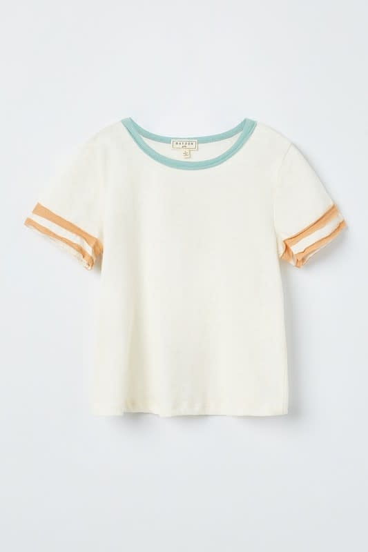 Girls Stripe Sleeve Knit Tee - Off White