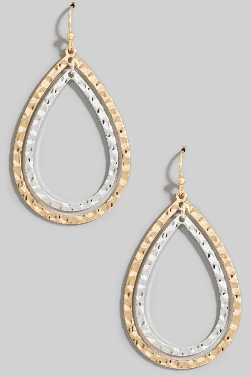 - This pair of dangle earrings introduces a stunning hammered layered double tear style. Explore a blend of classic charm and contemporary flair.