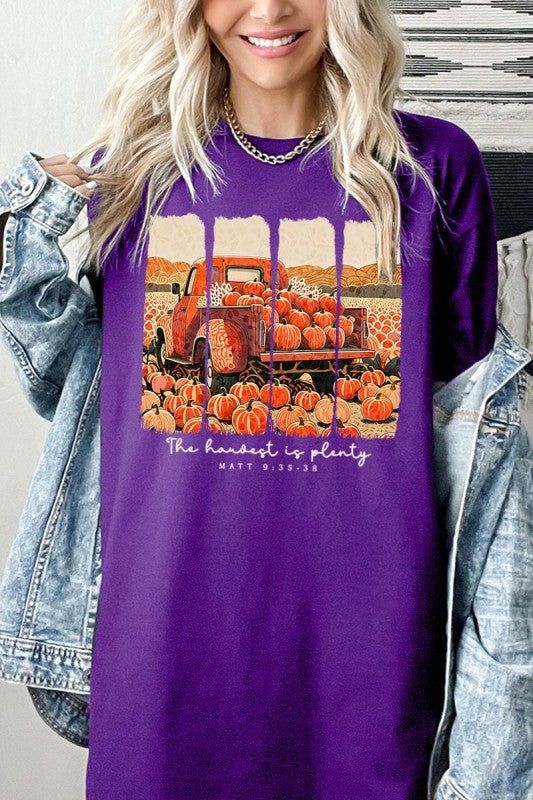 christian fall shirt, bible verse tee, harvest graphic tee, pumpkin truck shirt, thanksgiving graphic tee, scripture t-shirt, religious pumpkin Graphic Heavy Cotton Tee.