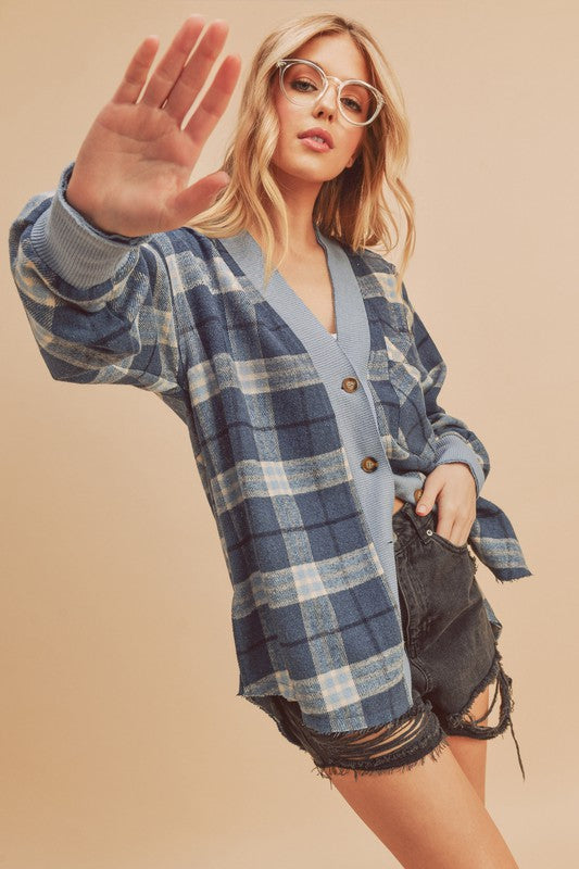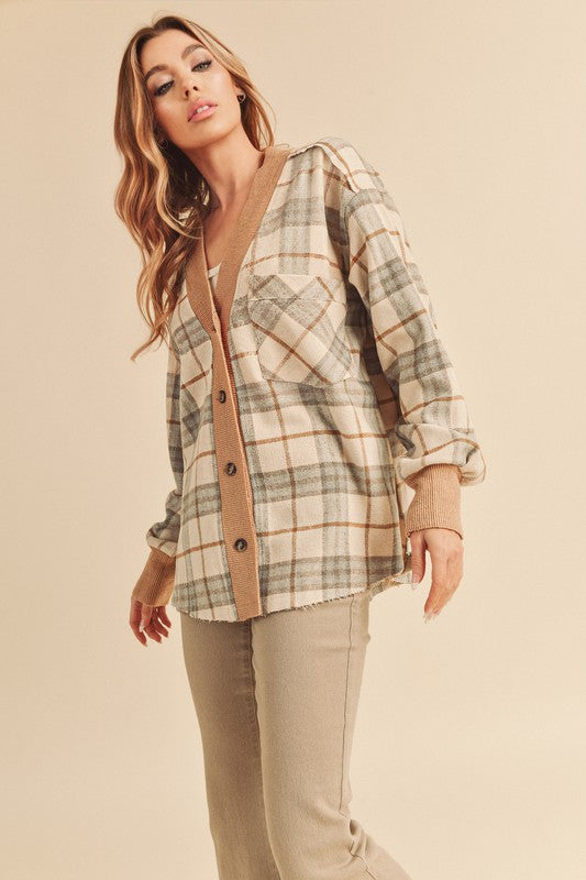 Hila jacket has an effortless edge features button front closure, side slits, patch pocket, slouchy silhouette with dropped shoulders and exposed seaming for added dimension.