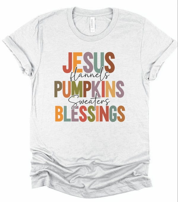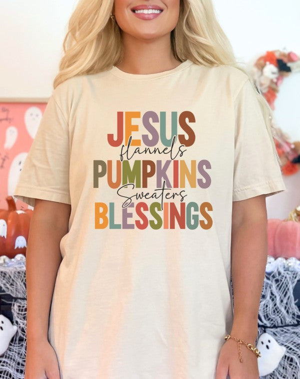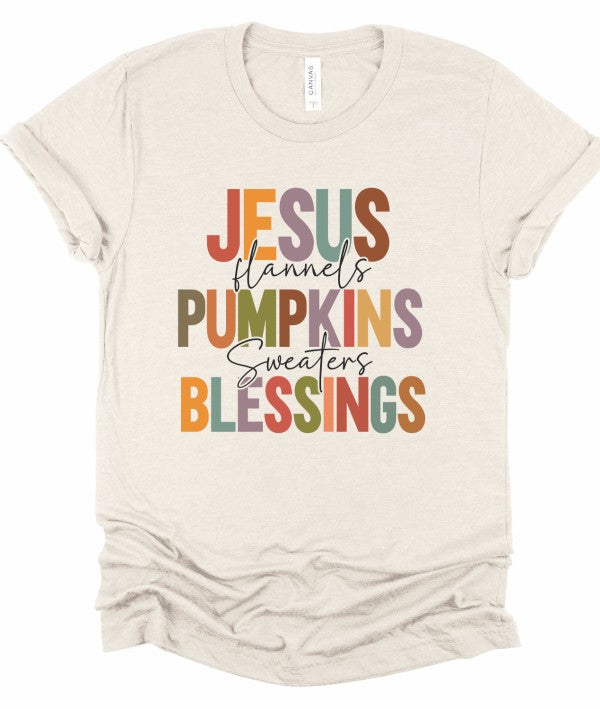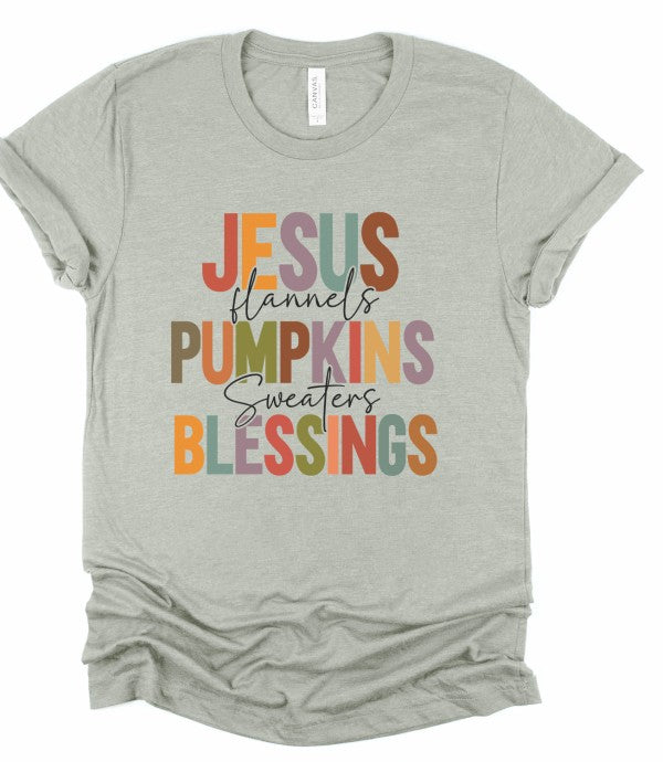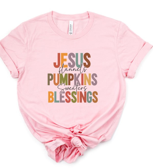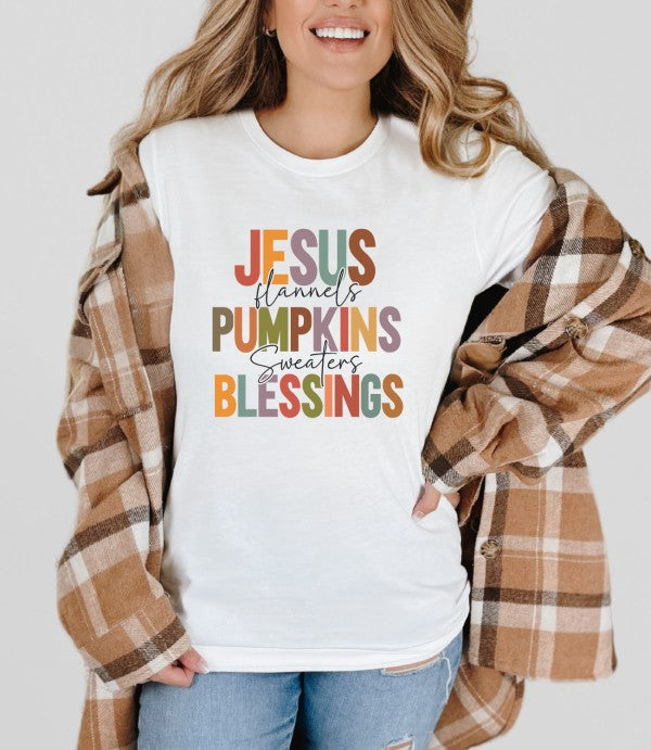 Jesus Flannels Pumpkins Sweaters Blessings Graphic Tee Top