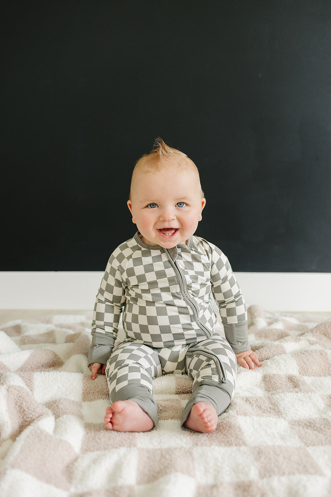 The Light Green Checkered Bamboo Zipper pajamas are a must-have for your baby's wardrobe. Made from soft bamboo fabric, these gender-neutral footed pajamas feature a convenient double zipper design that allows for easy diaper changes. The double zipper zips from the top and bottom, making nighttime changes a breeze. The added foot cuffs not only keep your baby cozy but also allow for extended wear as your child grows. These pajamas combine functionality with style, making them an essential item for any parent.
