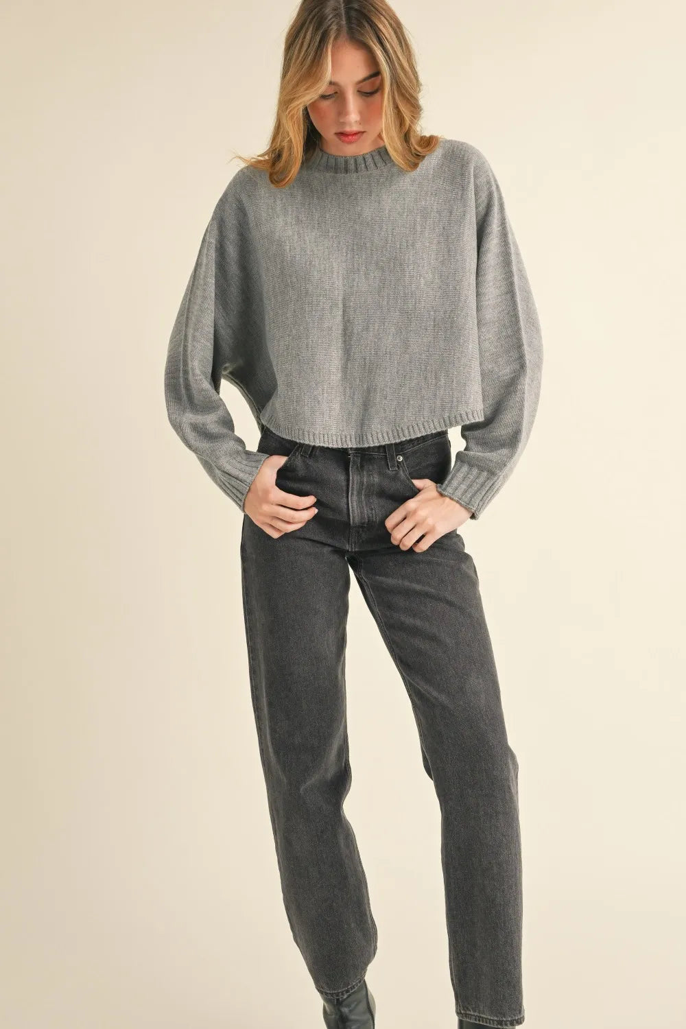 Mable Round Neck Dolman Sleeve Cropped Sweater