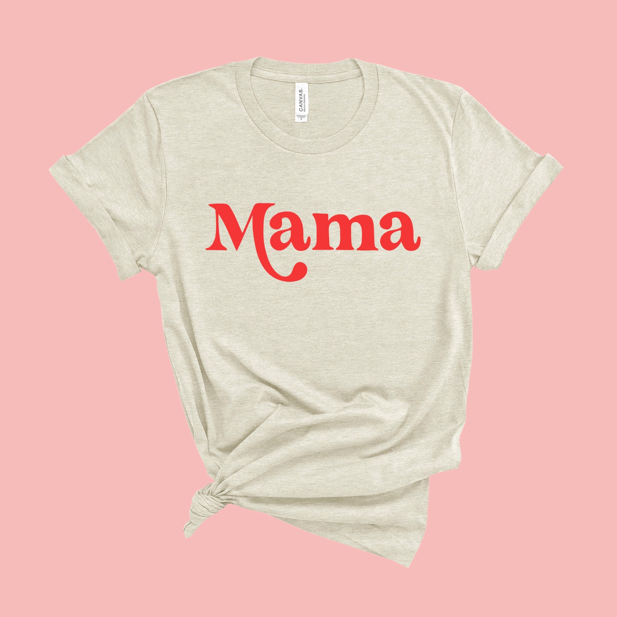 Adult Peach or Natural Colored Unisex Shirt - Mama - Red Design