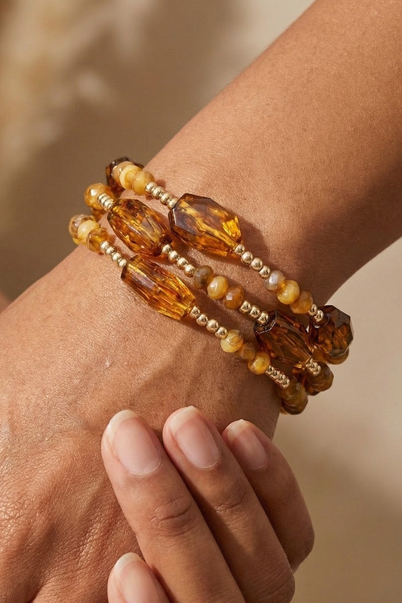 Marble Resin And Mini Metallic Beaded Bracelet Set