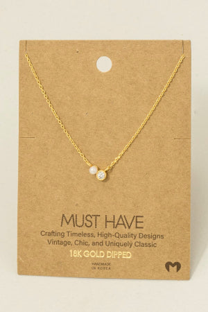 Mini Pearl And Cz Stud Charm Necklace