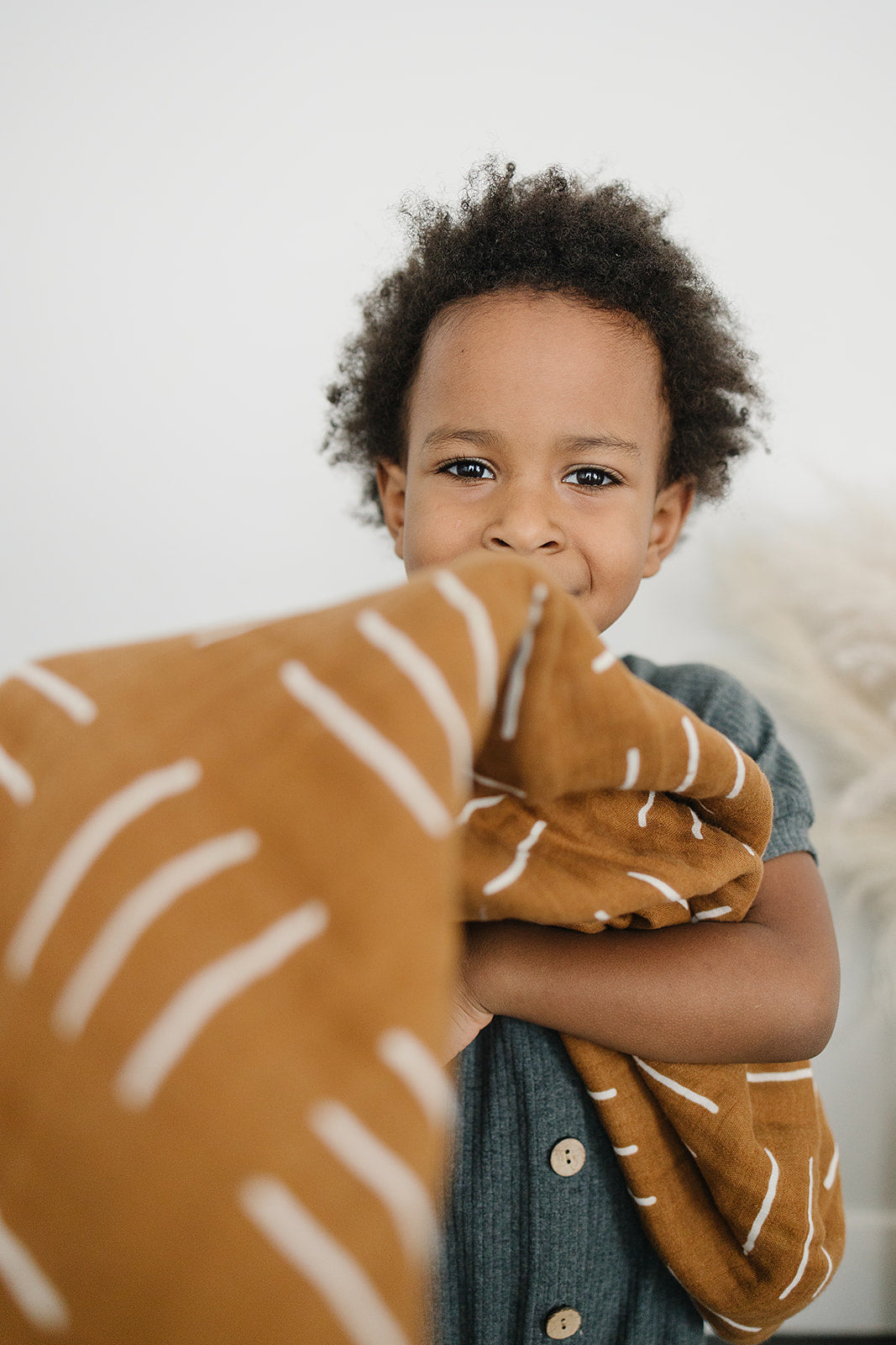 The Mustard Mudcloth Muslin Quilt is a delightful addition to any nursery or home. Made from the same fabric as muslin swaddles, this quilt is four layers thick, providing extra warmth and comfort for older babies or toddlers. The neutral print adds a touch of elegance and sophistication to any room. One of the best features of this quilt is that it becomes softer with every wash, ensuring a cozy and gentle feel against your little one's skin. Its gender-neutral design makes it a perfect gift for both boys and girls. Not only is it a practical baby essential, but it also doubles as a stylish decor piece. Embrace the durability, breathability, and beauty of the Mustard Mudcloth Muslin Quilt for your little one.