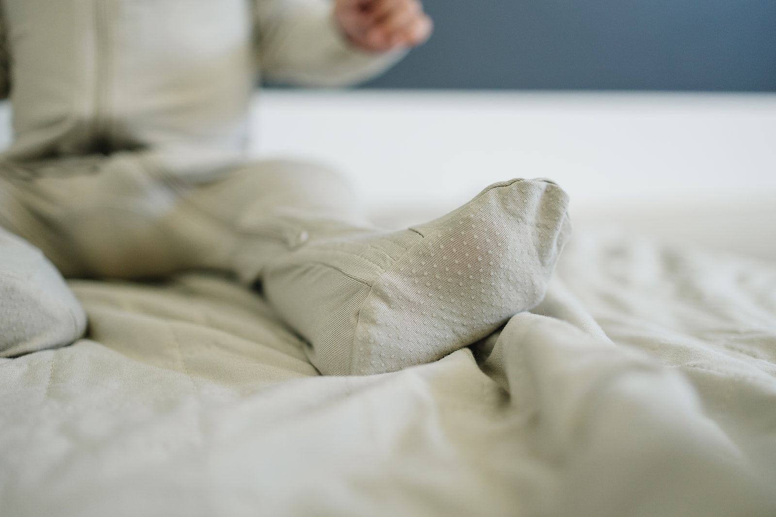 Each pajama up to size 6-12 have hand cuffs, and size 6-12 & 12-18 have foot grips.