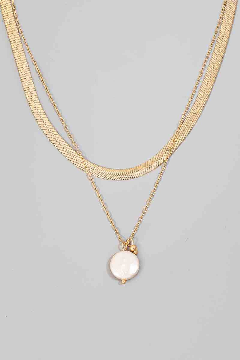 Elegant and modern, this necklace features layered gold-tone chains accented with dainty pearls. Perfect for dressing up any outfit, it offers a chic, ready-to-layer look in one easy piece.
