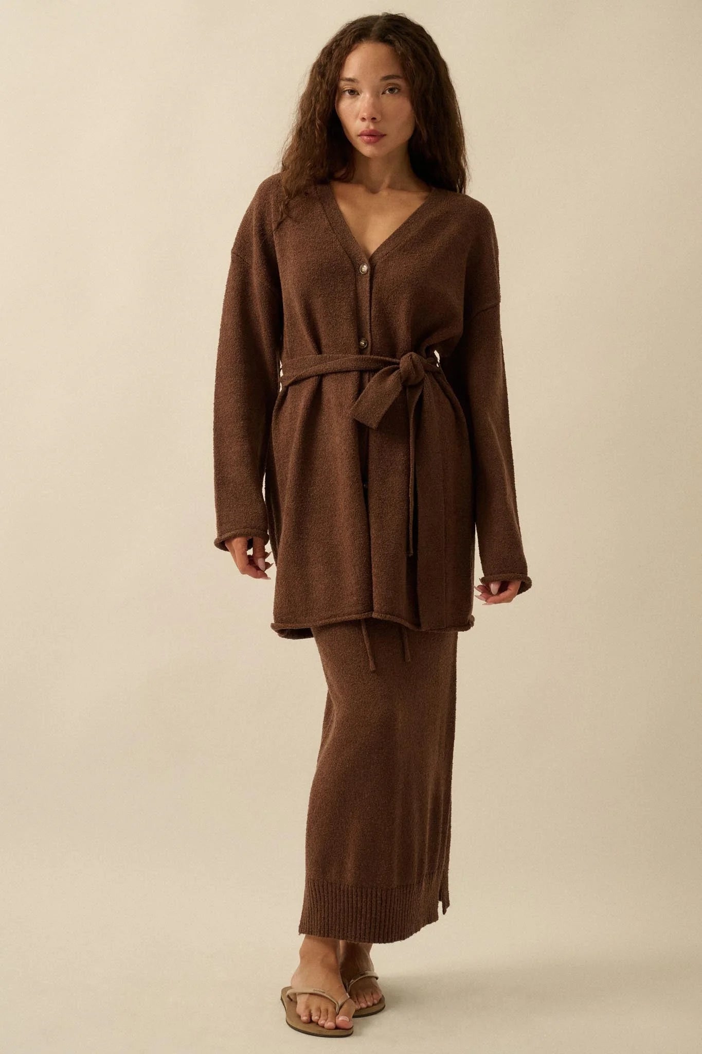 - Textured knit cardigan sweater.