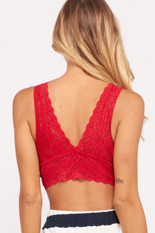 Scalloped Lace V Neck Padded Bralette