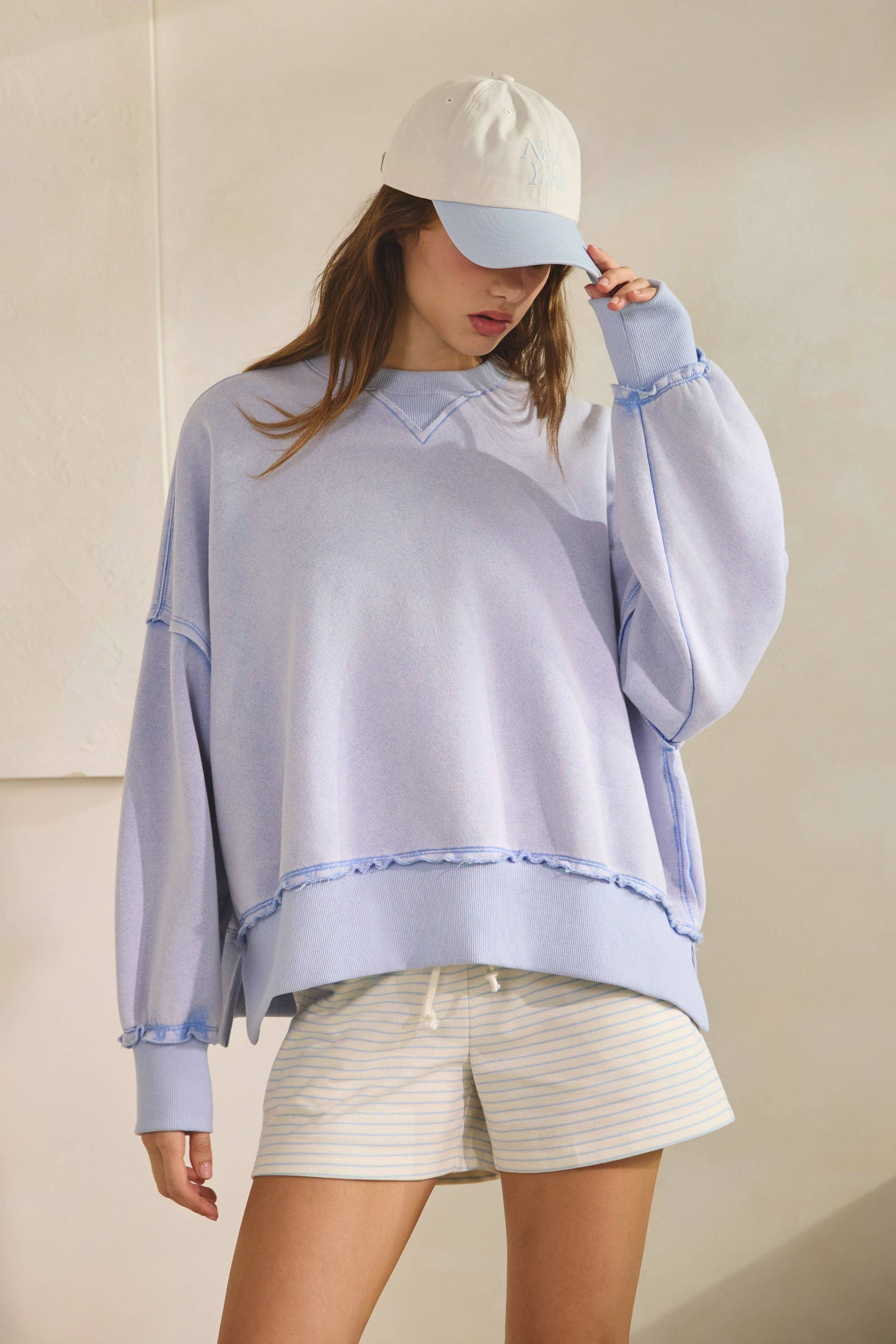 Hug Distressed Washed Sweatshirt Pullover