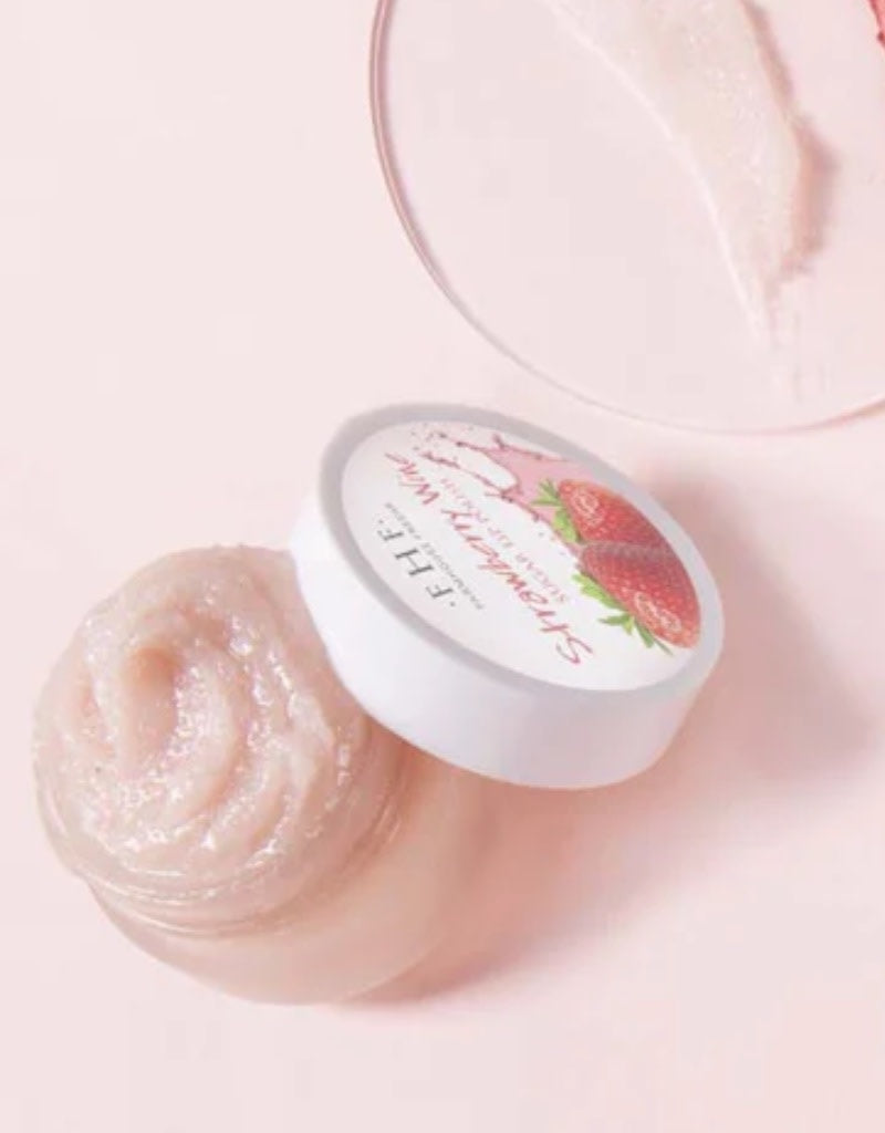 A SPLASH OF SMOOTH HYDRATION: Strawberry Wine Lip Polish is a devilishly smooth shea butter and sugar exfoliator that leaves lips incredibly soft, with U.S. cane sugar, juicy vitamin-C rich organic strawberries, and a splash of rich Texas wine.Strawberry Wine Lip Polish: Sucrose (Sugar), Glycerin, Sorbitol, Ethyl Alcohol (Wine), Caprylic/Capric Triglyceride, Glyceryl Stearate SE, Cetyl Alcohol, Cetearyl Alcohol, Ceteareth-20, Polysorbate 80, Natural Flavor*, Strawberry Powder (Certified Organic), Butyrospermum Parkii (Shea) Butter, Helianthus Annuus (Sunflower) Seed Oil, Beeswax, Tribehenin, Tocopherol, Phenoxyethanol. *Natural flavor derived from 100% natural sources.