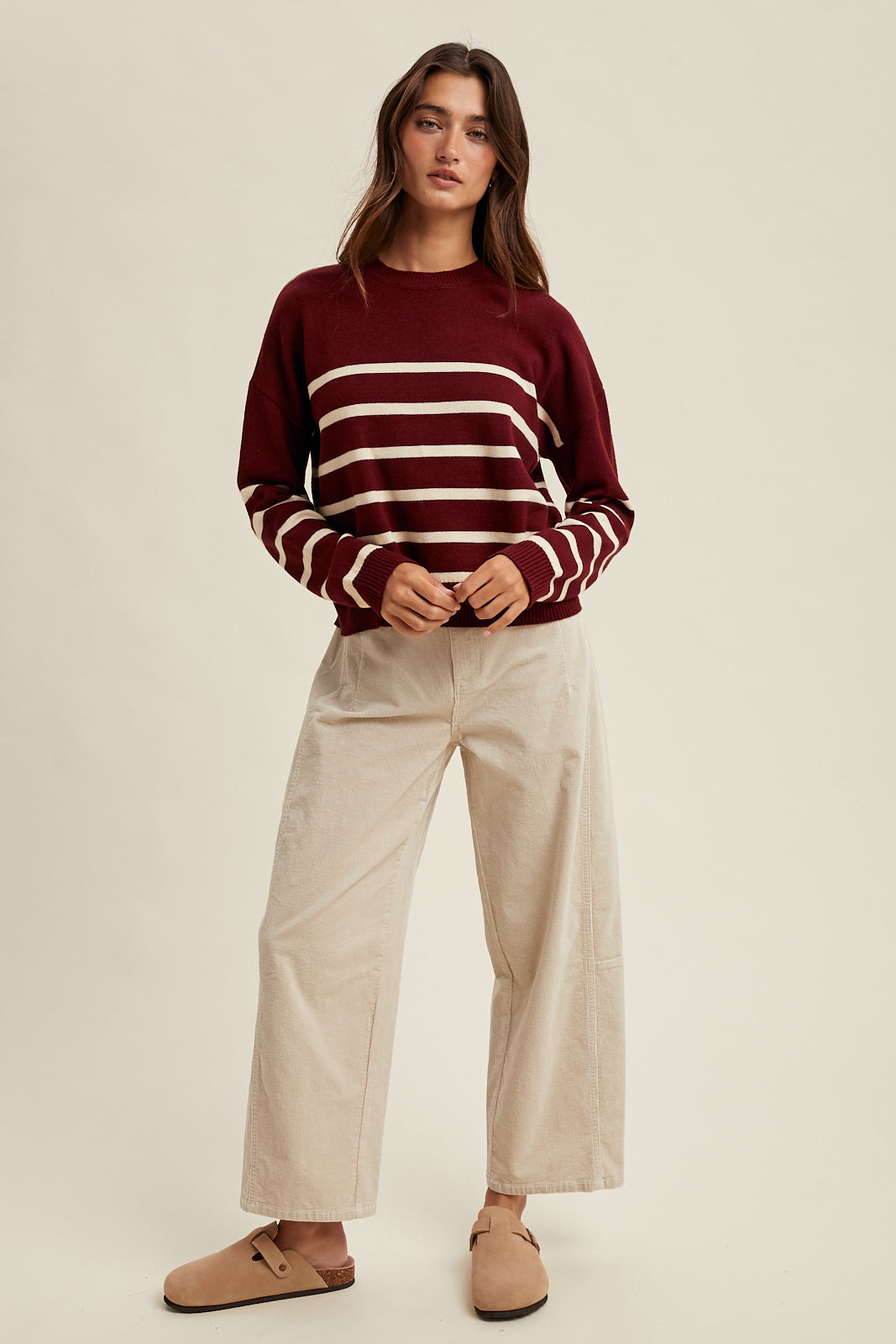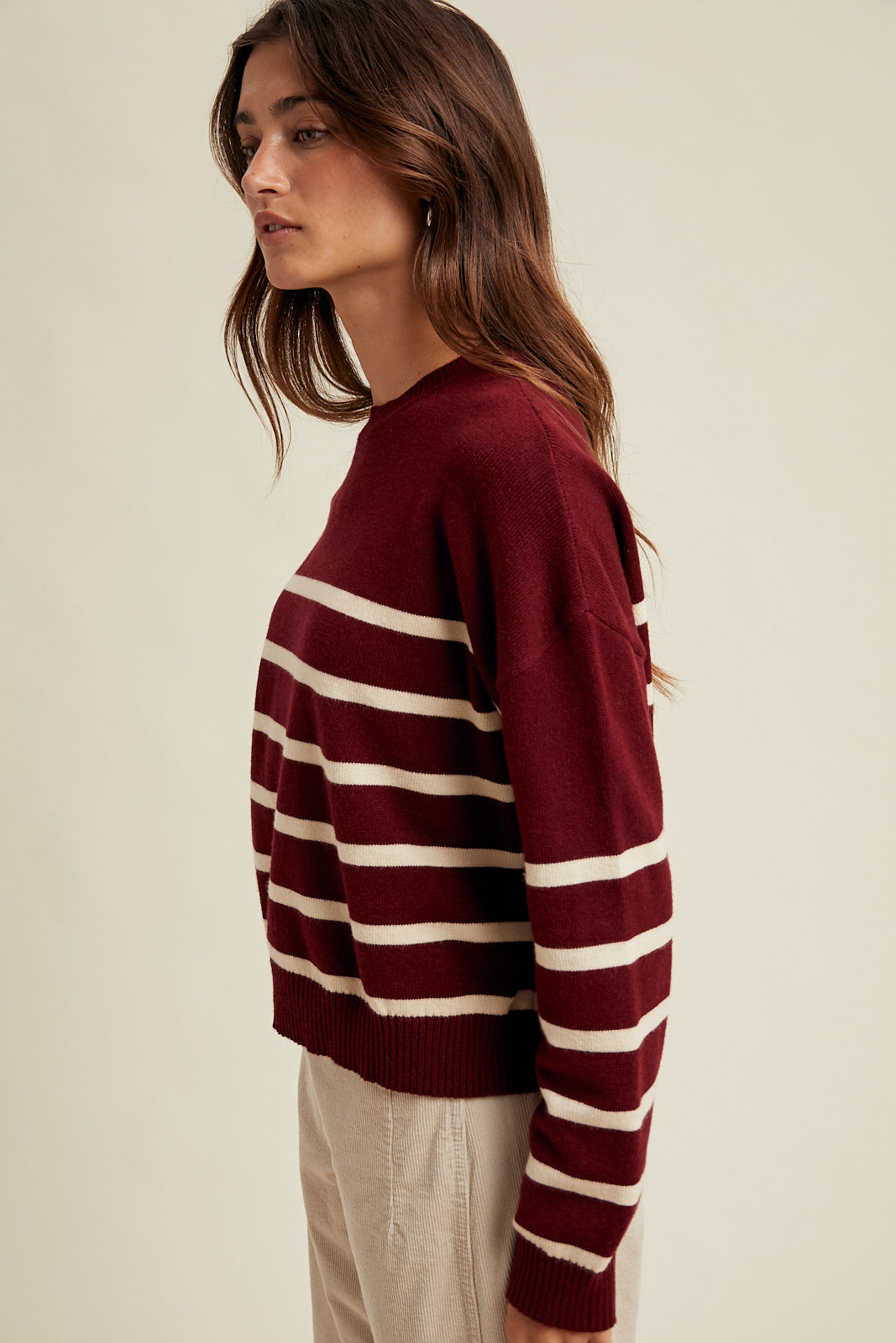 STRIPED DROP SHOULDER LIGHTWEIGHT SWEATER