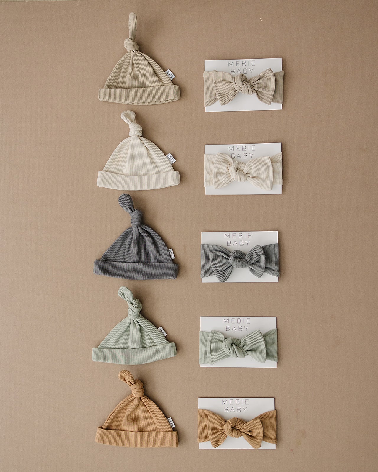 Wrap your little one in comfort and style with the Mebie Baby Organic Head Wrap. Crafted from gentle organic cotton, this one-size head accessory is designed to fit newborns and up. The simple square knot closure allows for easy resizing to ensure a perfect fit. The head wrap comes in a variety of neutral colors that are not only soft but also versatile, making it a lovely addition to your baby's wardrobe. Complete the look by pairing it with matching items available in our shop.