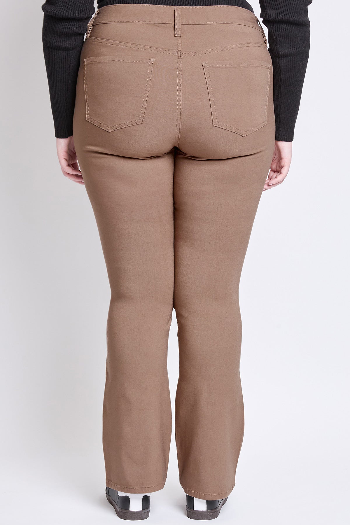 Women's Plus Hyperstretch Mid Rise Bootcut Pants - fit to contour your body and give you a curvy silhouette, all while making you look amazing! With specially constructed Hyperstretch fabric, this pant is extremely comfortable, flexible and one of a kind! Complete with two porkchop front pockets and two functional back pockets. Bootcut pants are known for their classic and versatile style, as they can be worn with various types of footwear, including boots.